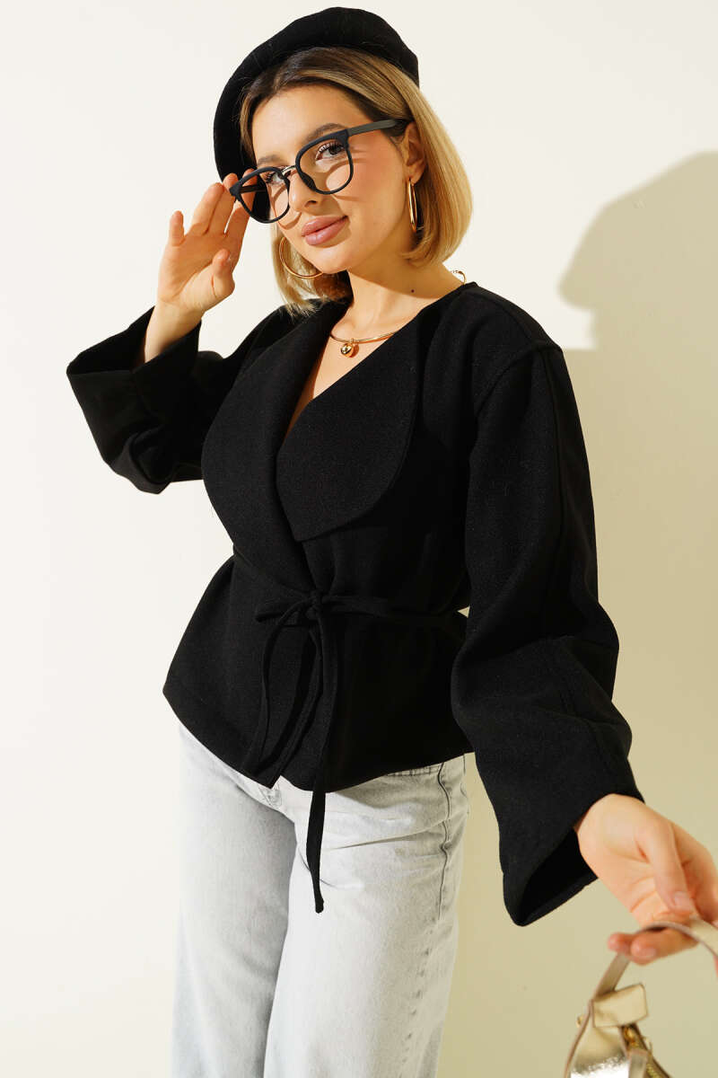 İp Bağcıklı Kaşe Ceket Siyah