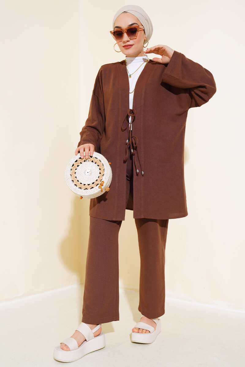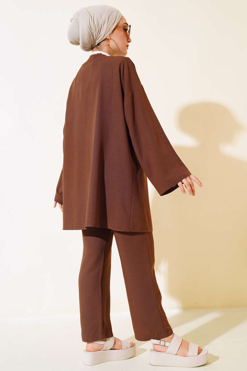 Yaka Ribanalı Fermuarlı İkili Takım Camel