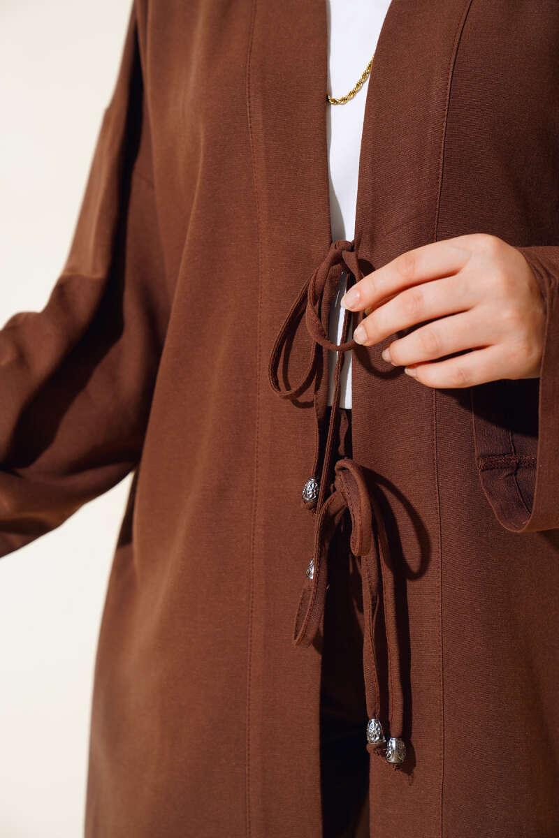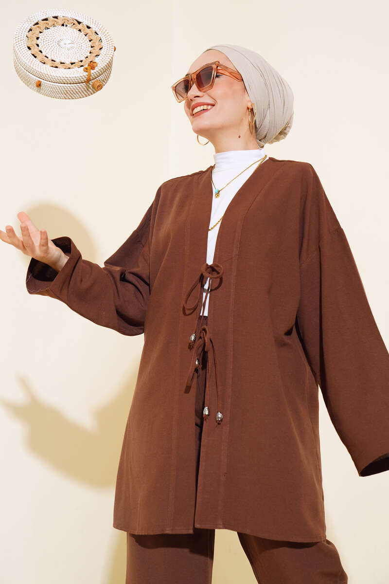 Önü Bağlama Detaylı Keten Kimono Lacivert