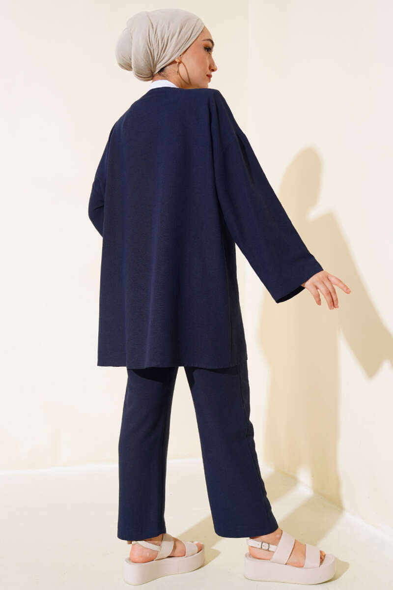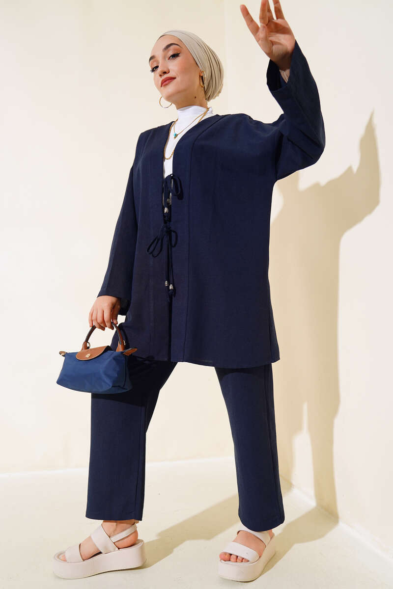 Yan Bağlamalı Kadife Fitilli İkili Takım Lacivert