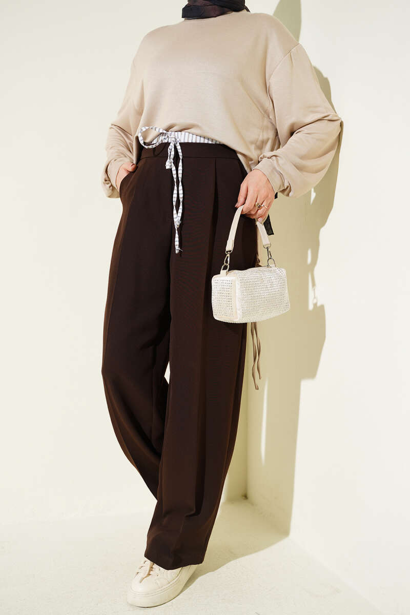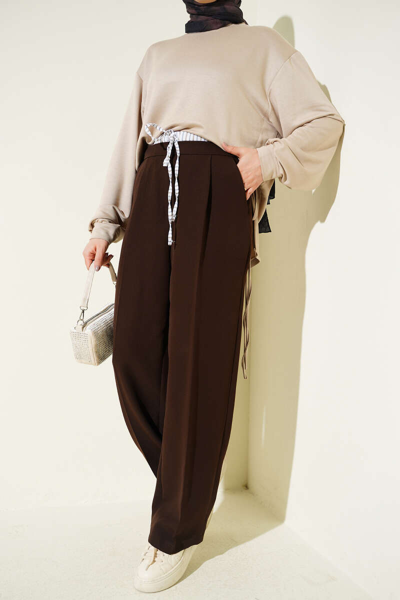 Beli Lastikli Çımalı Pantolon Kahve