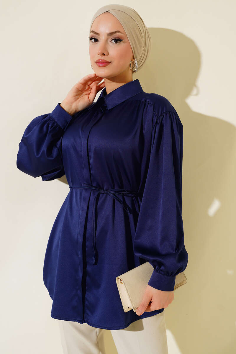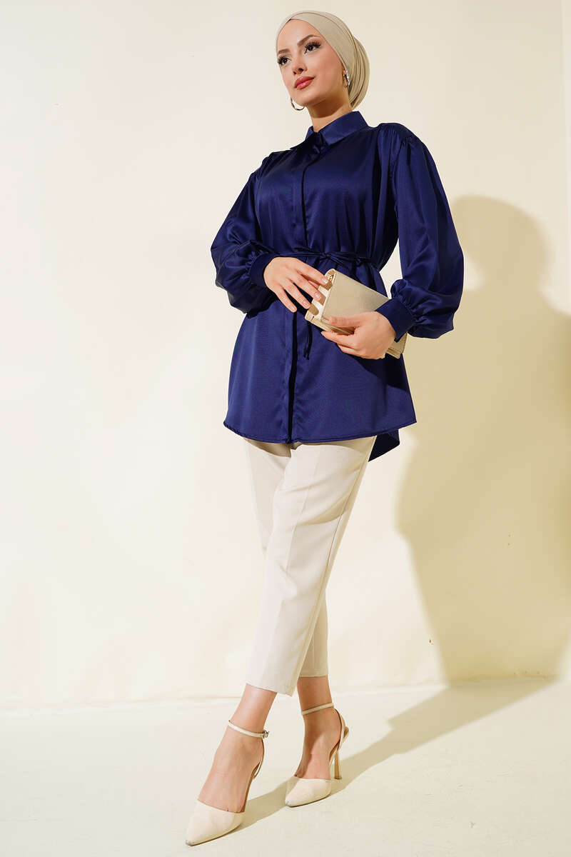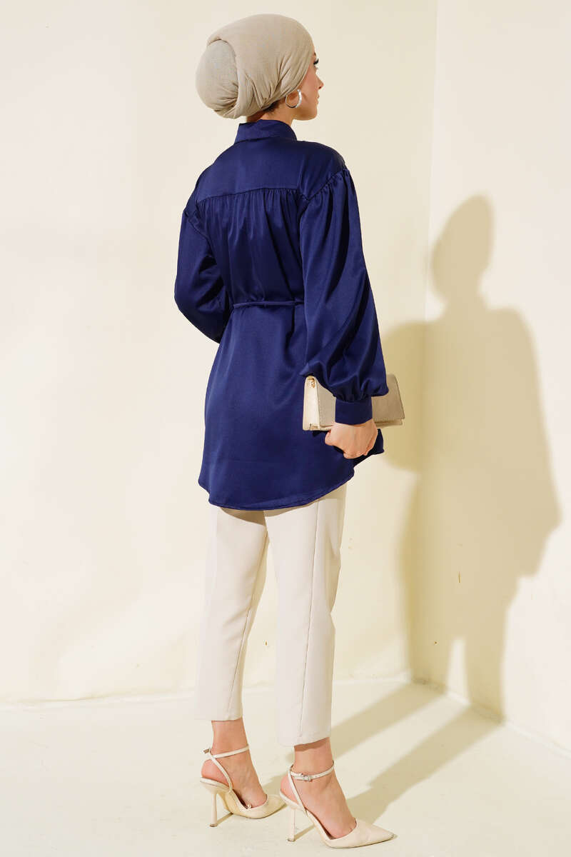 Yeni sezon gömlek modelimiz sizlerle beraber. Gömleğimizin omuzu büzgülüdür. Kol bilekleri manşetli ve düğmelidir. Gömleğimizin önü boydan gizli düğmelidir. Kendi kumaşından bir adet ip bağcığı vardır. Önü kısa arkası uzun modeldir. Şık ve zarif olan saten gömleğimiz renk seçenekleriyle sizleri bekliyor.