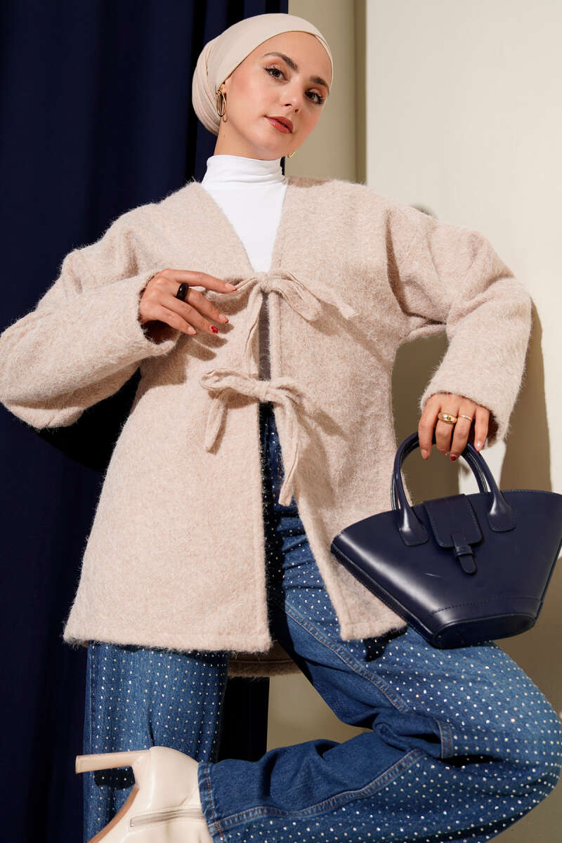 Tek Düğmeli Kemerli Sakallı Ceket Bej