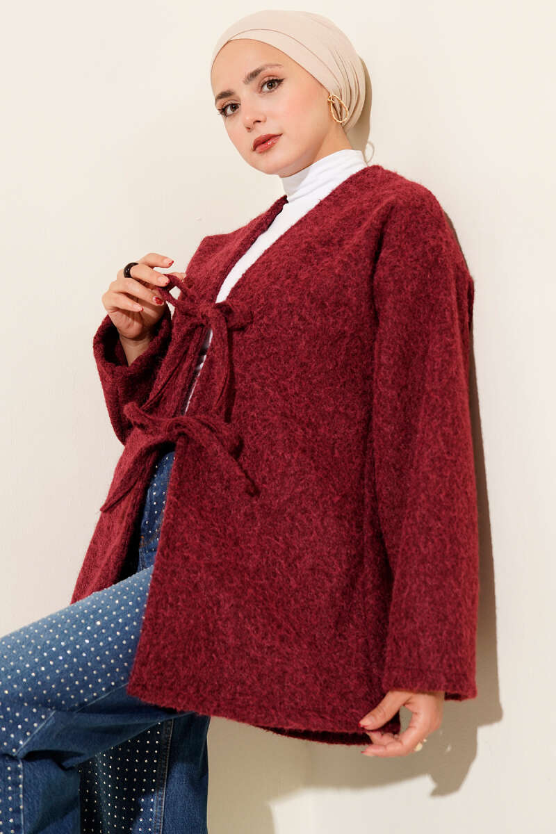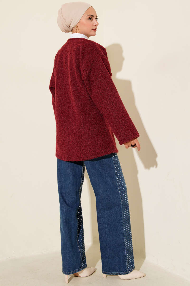 Tek Düğmeli Kemerli Sakallı Ceket Mor