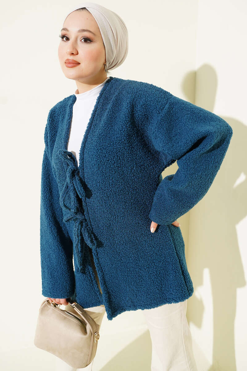 Bel Tünelli Çıtçıtlı Peluş Ceket Kahve