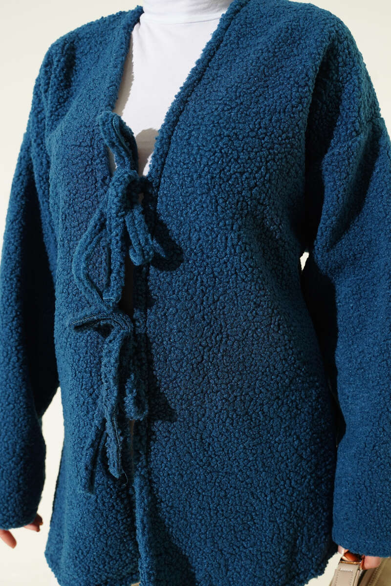 Bel Tünelli Çıtçıtlı Peluş Ceket Bej