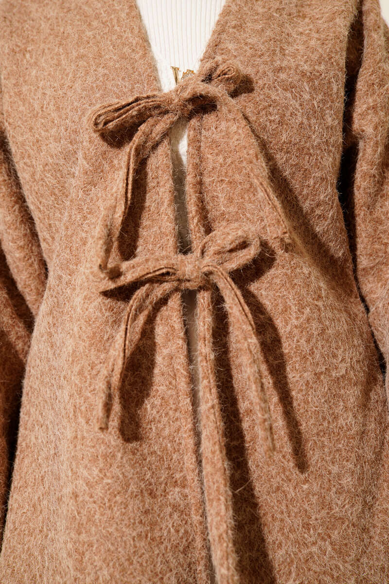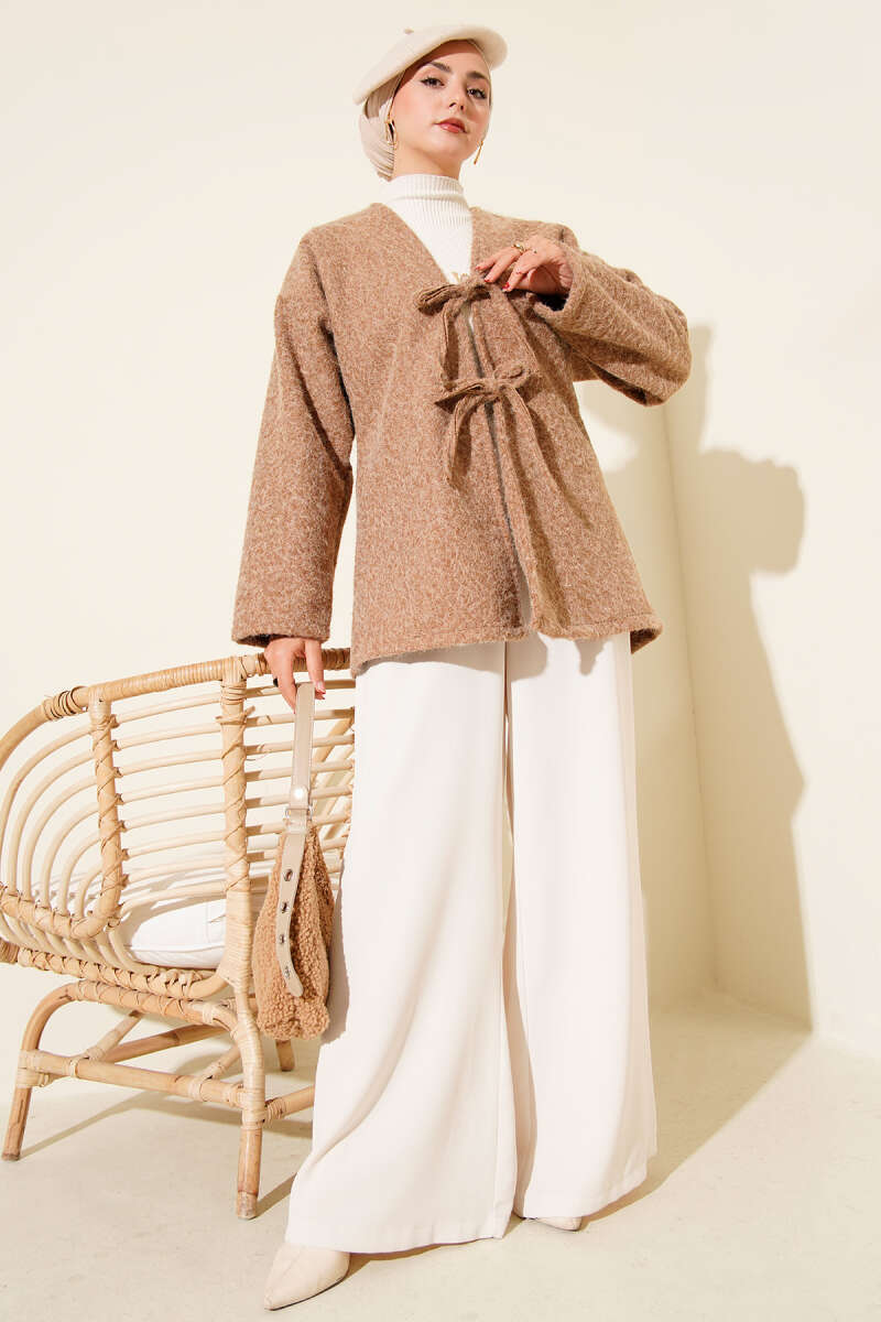 Gömlek Yaka İp Kuşaklı Deri Ceket Bej