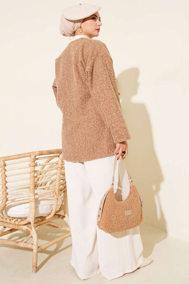 Tek Düğmeli Kemerli Sakallı Ceket Bej