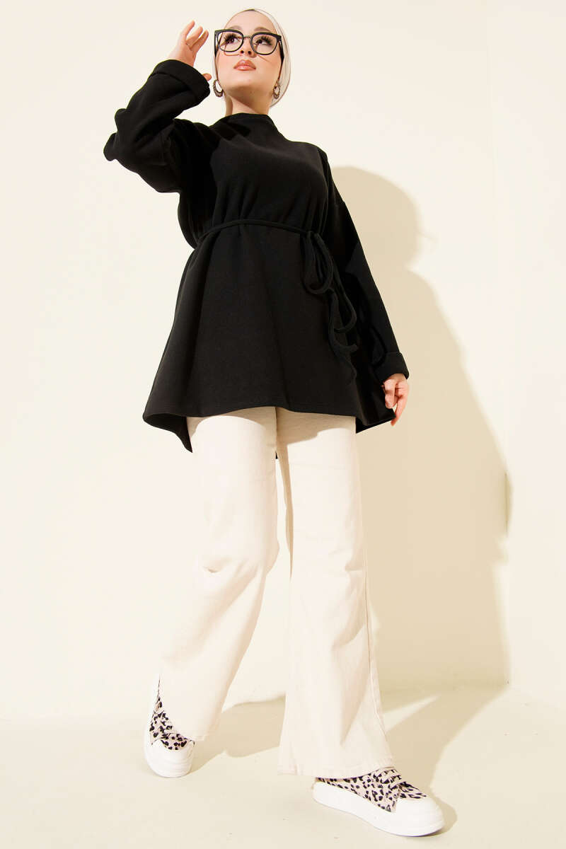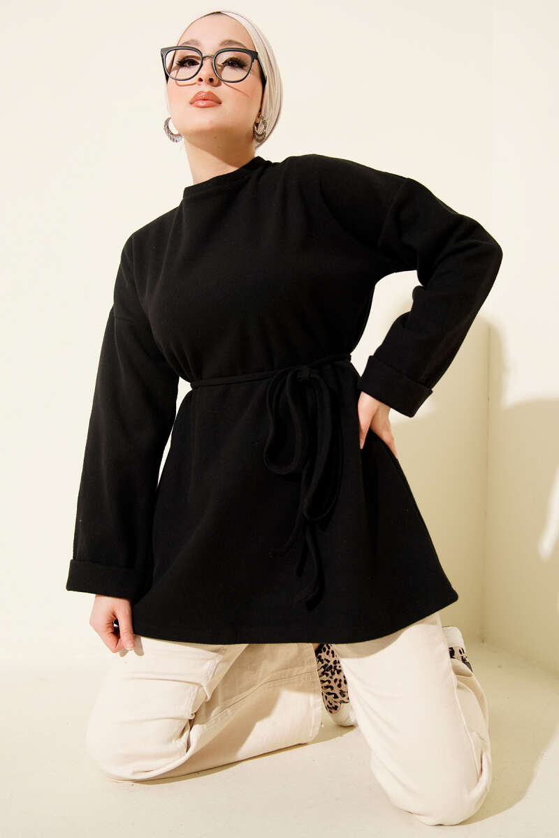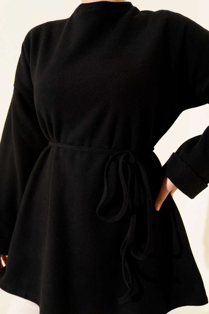 Gömlek Yaka Fularlı Triko Tunik Siyah