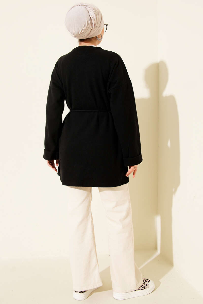 Taşlı Bel Tünelli Scuba Kimono Kahve