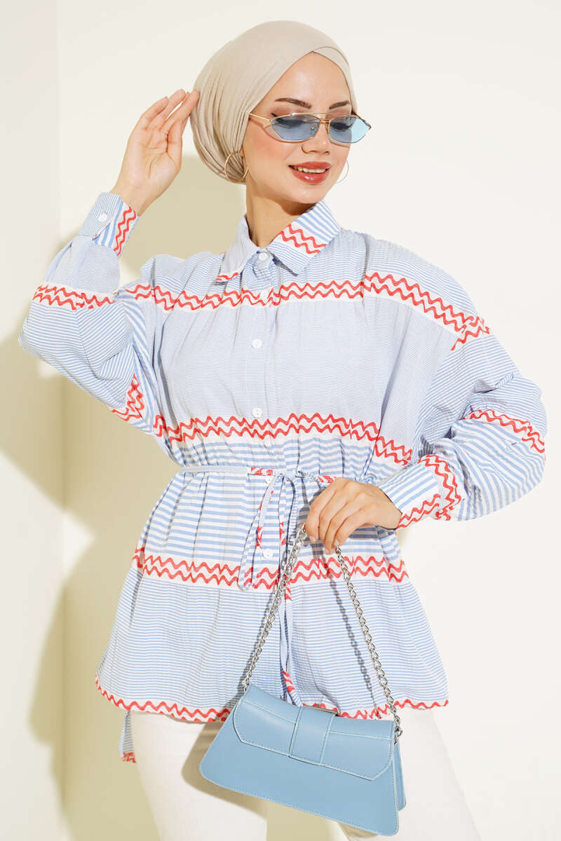 Gizli Düğmeli Bel Kuşaklı Gömlek Bebe Mavi