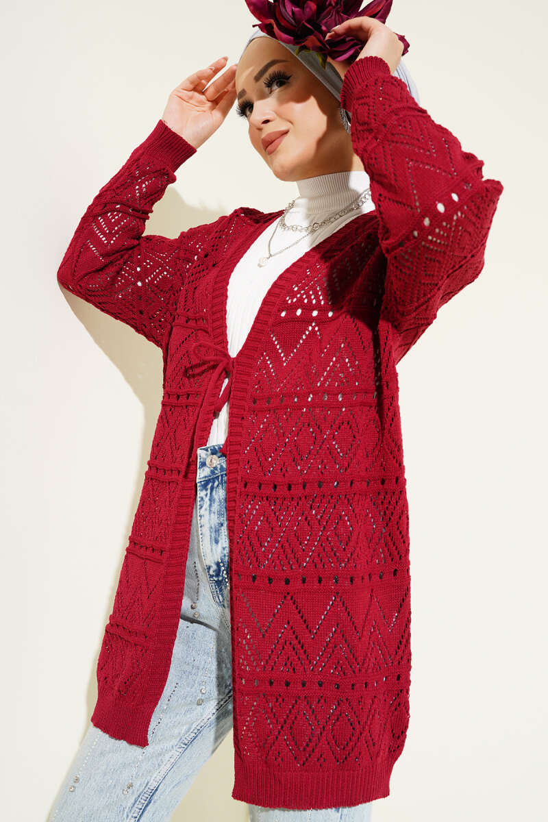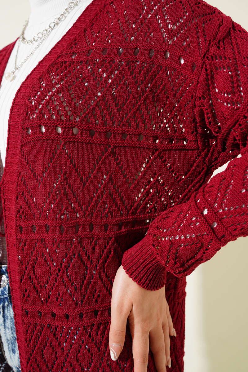 Cepli Gold Düğmeli Triko Hırka Bordo