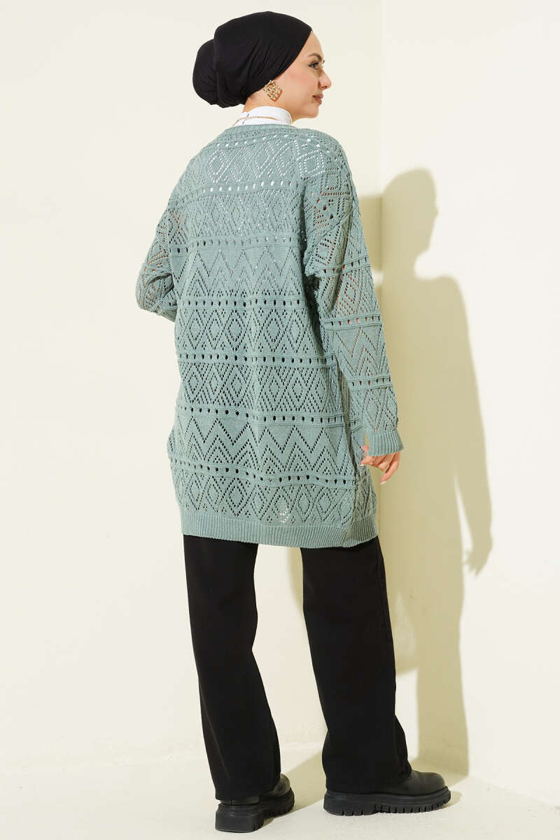 Düğmeli Cepli Uzun Triko Hırka Zümrüt