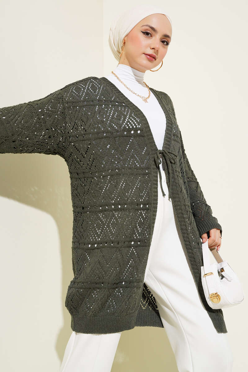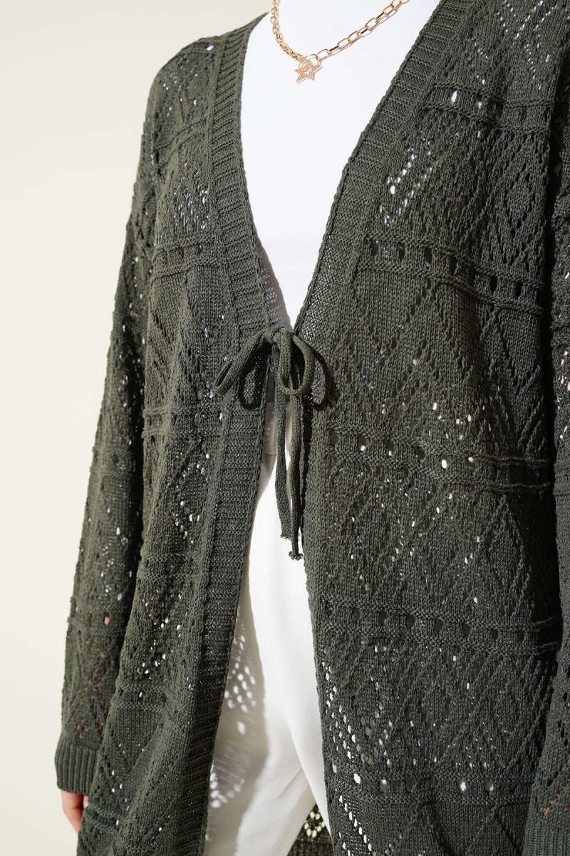 Düğmeli Kuşaklı Triko Hırka Siyah