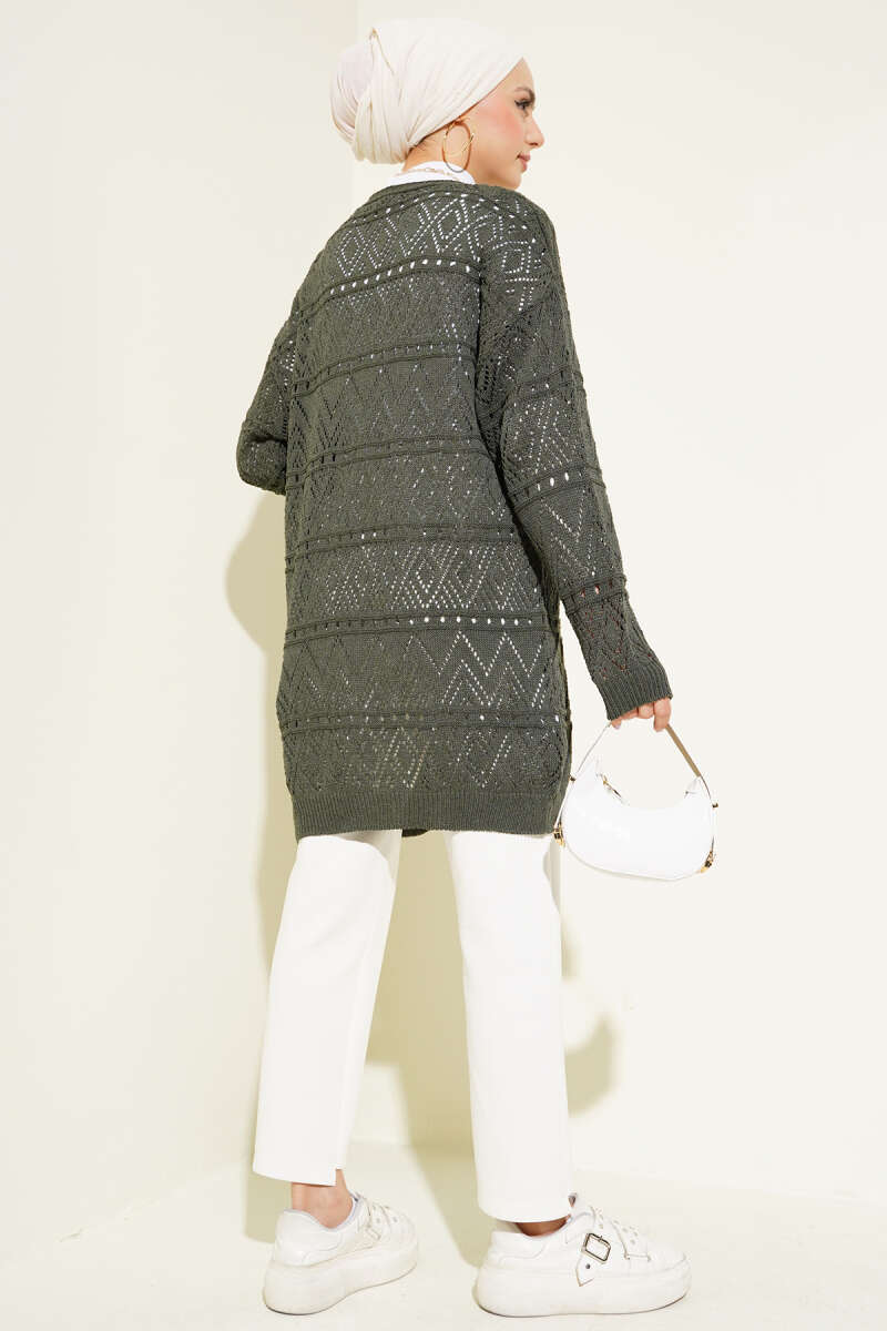 Zebra Desen Angora Detaylı Triko Hırka Gri