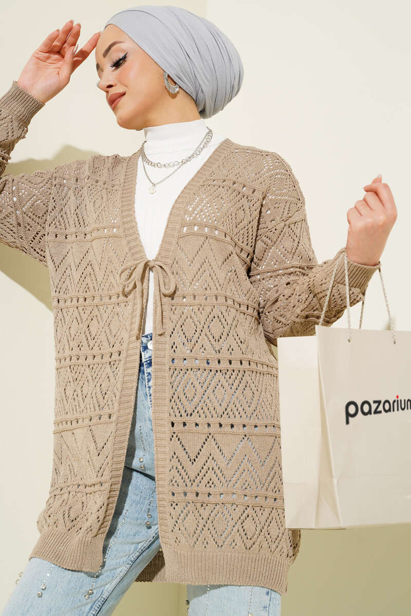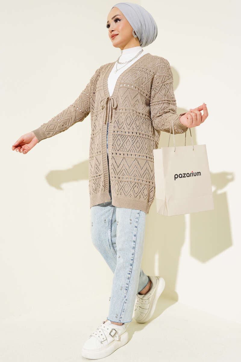 Pirinç Örgü Basic Triko Hırka Vizon