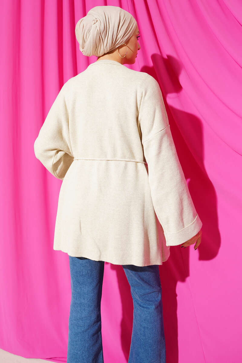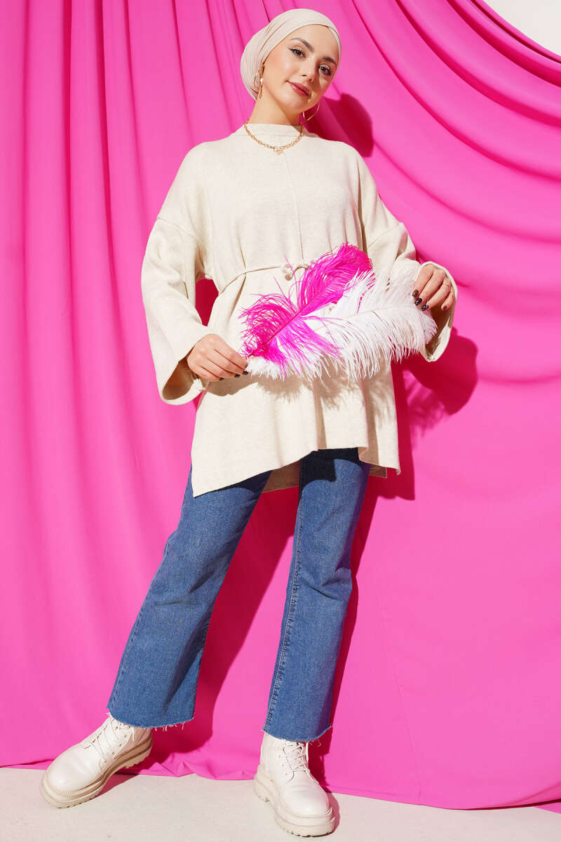 İp Bağlamalı Duble Kol Triko Tunik Kahve