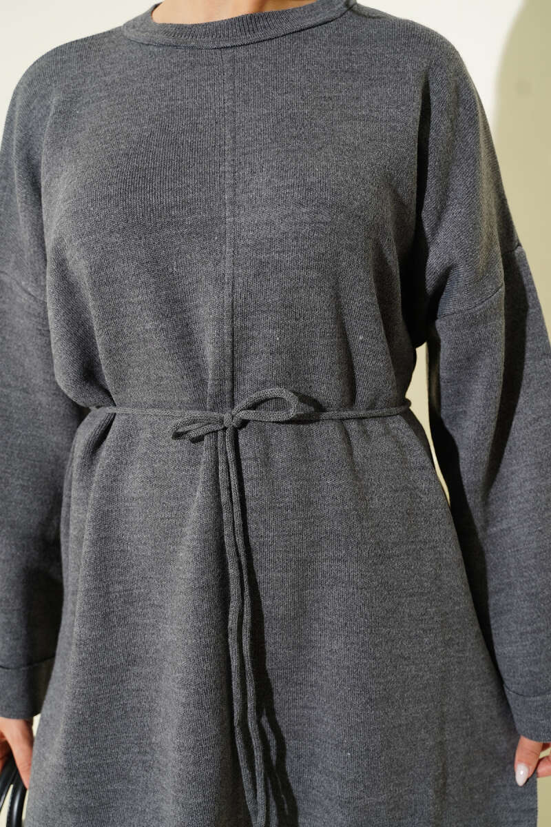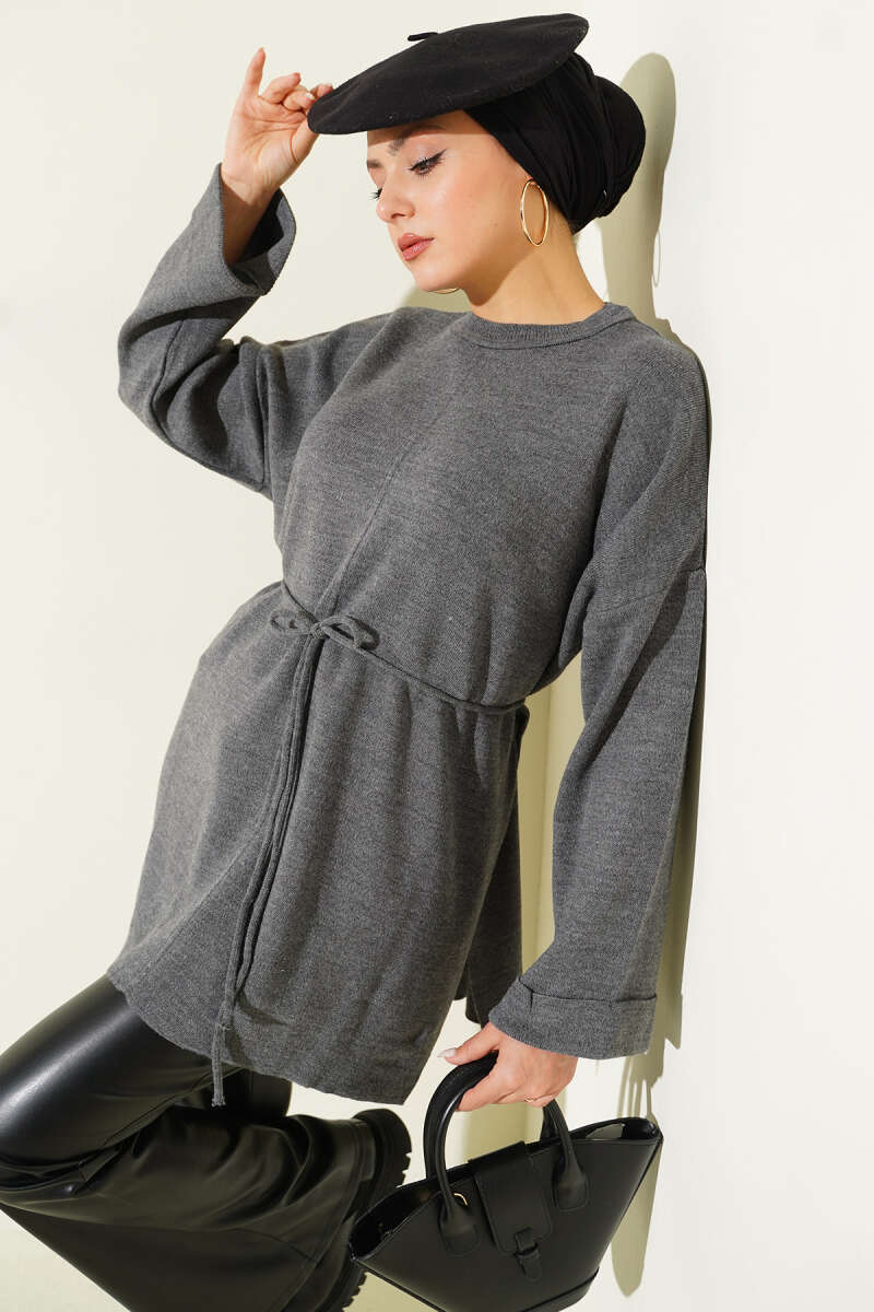 İp Bağlamalı Duble Kol Triko Tunik Ekru