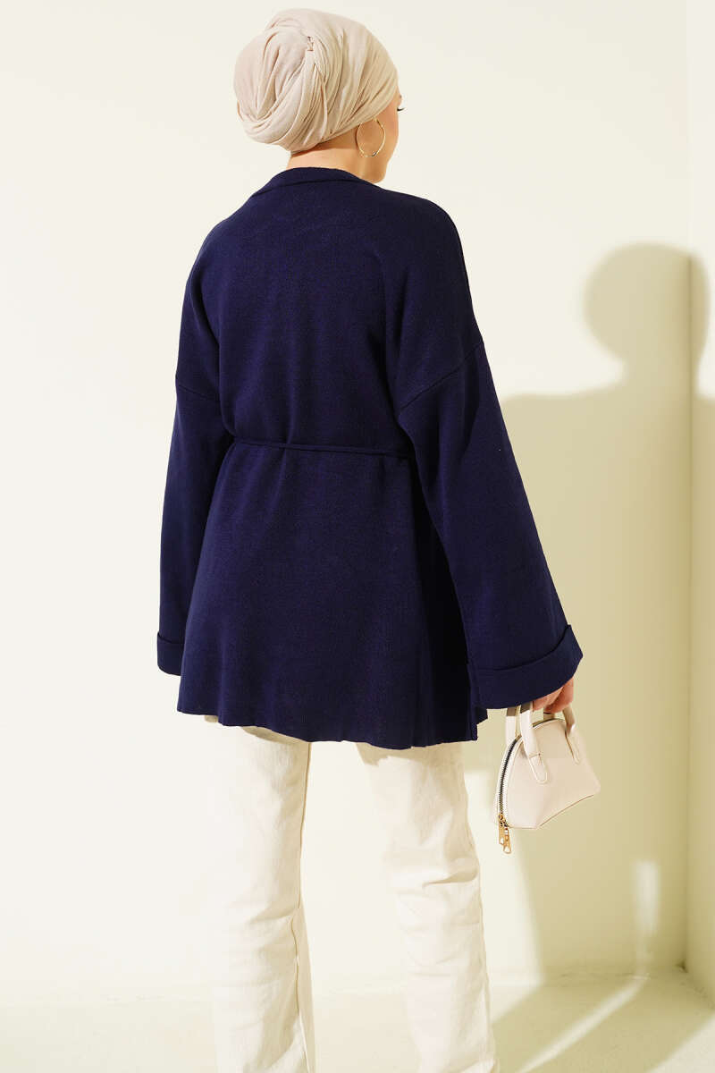 Kol Ucu Düğmeli Şal Yaka Triko Hırka Lacivert