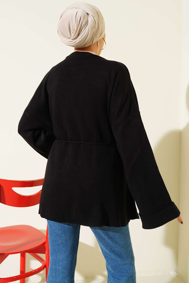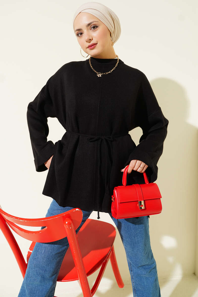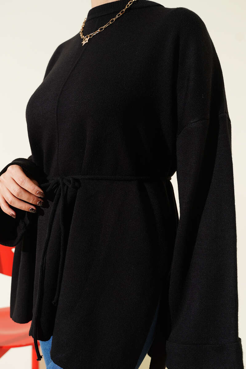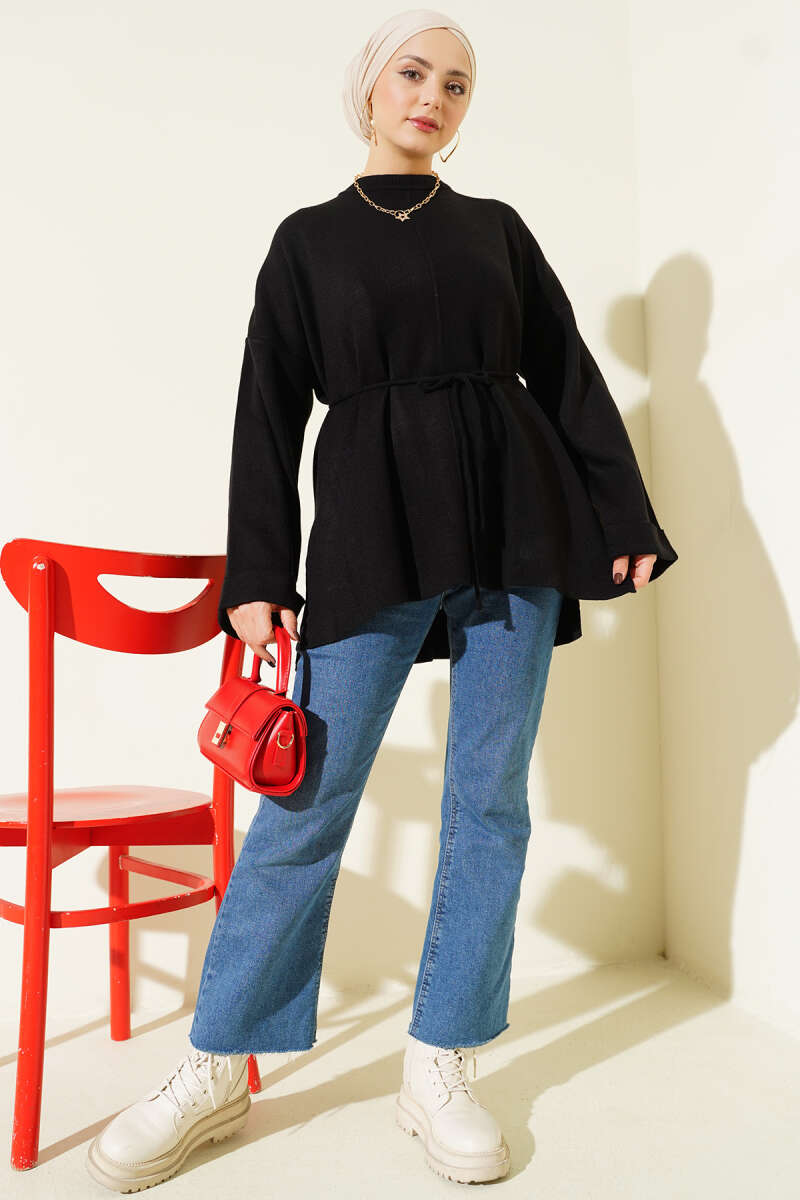 Kol Armalı Loyşa İp Kuşaklı Tunik Siyah