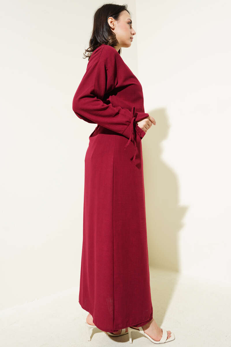 Büzgülü Omuz Pelerinli İkili Takım Bordo