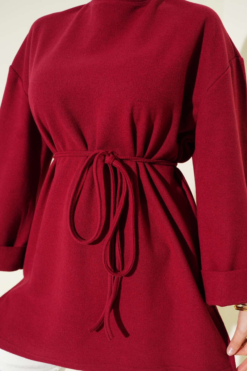 Baklava Kabartma Yumoş Triko Tunik Bordo