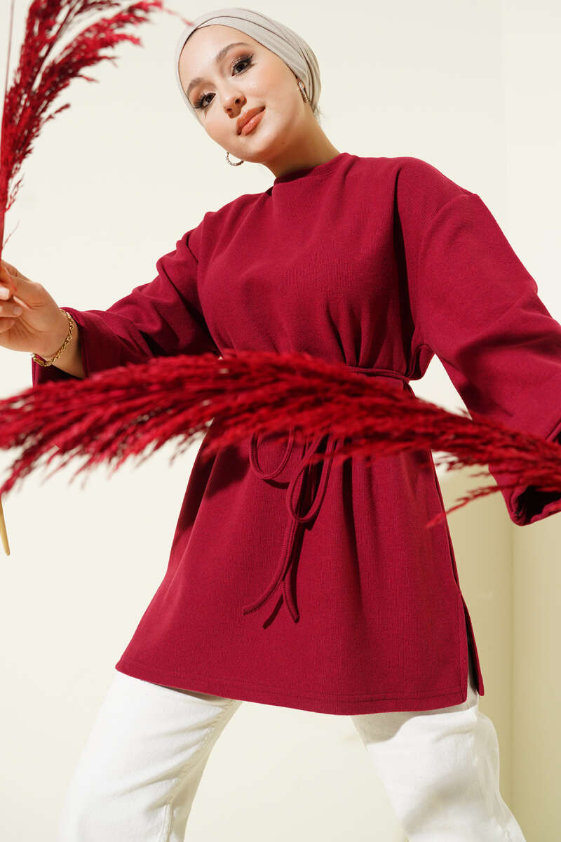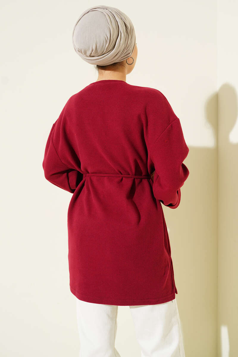 İp Bağlamalı Fitilli Kaşe Tunik Kırmızı