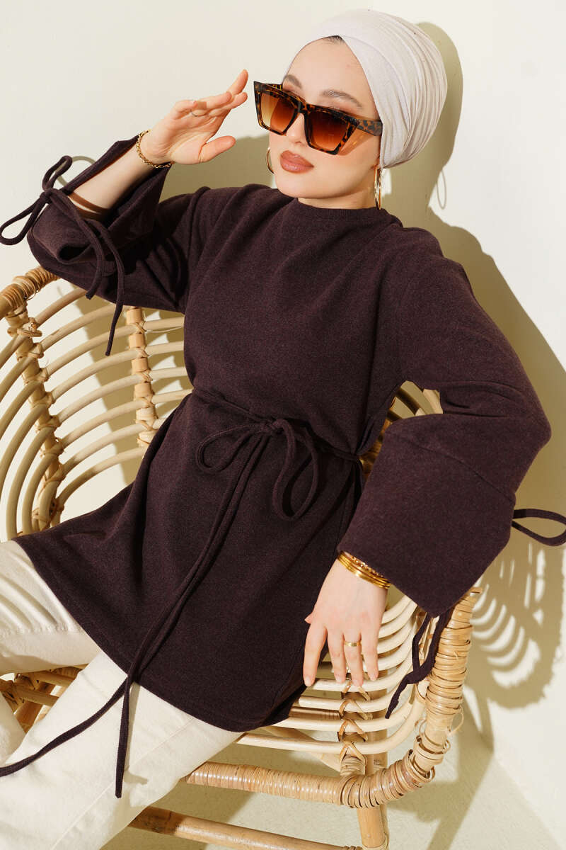 Kol Düğme Detaylı Triko Tunik Vizon