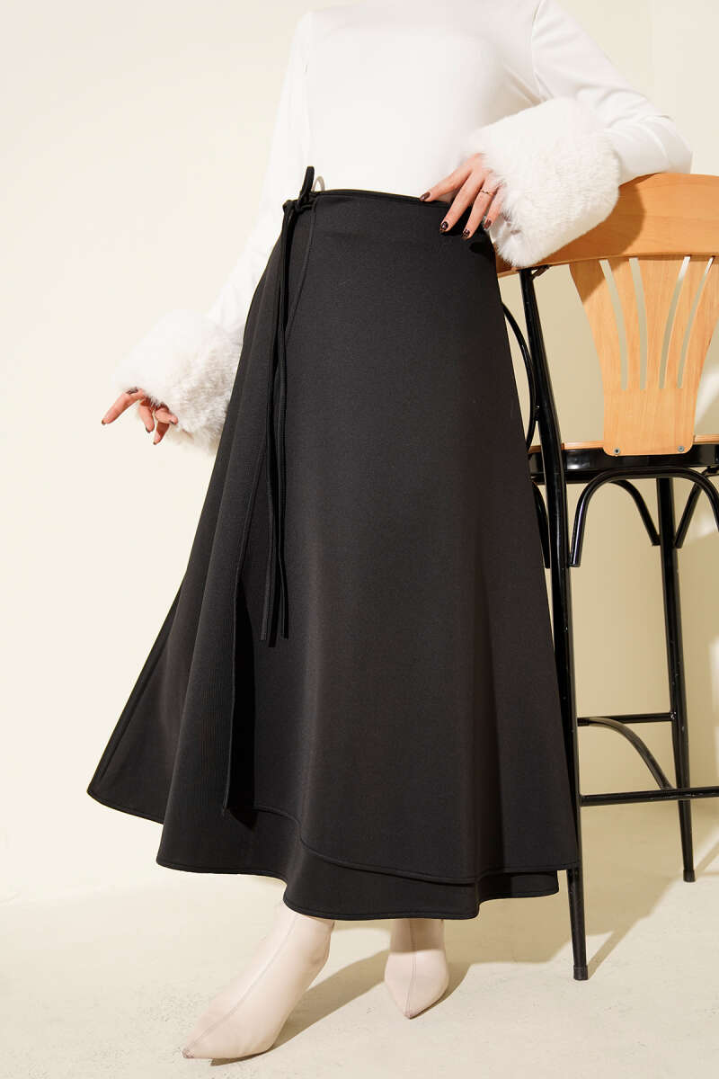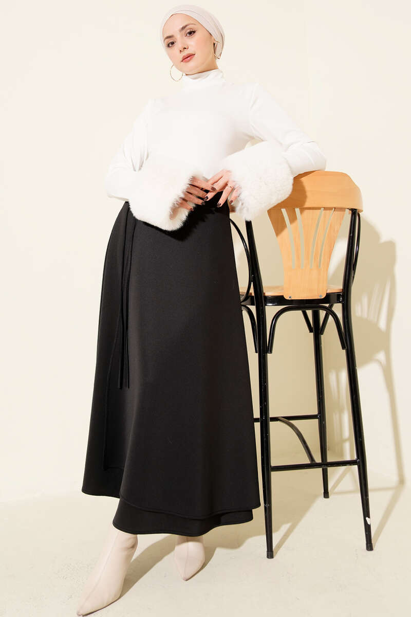 Bel Lastikli Kloş Scuba Etek Siyah
