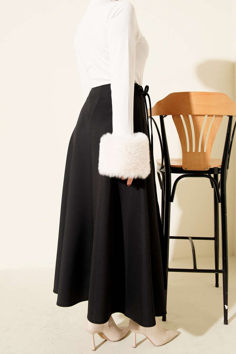 Bel Lastikli Süet Kloş Etek Siyah