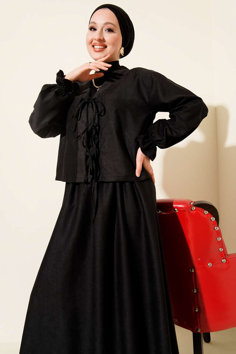 İp Bağlamalı Kol Lastikli İkili Takım Siyah