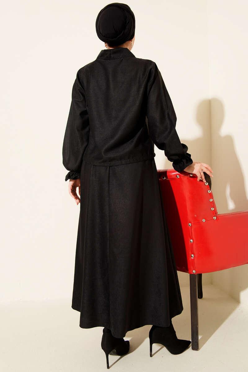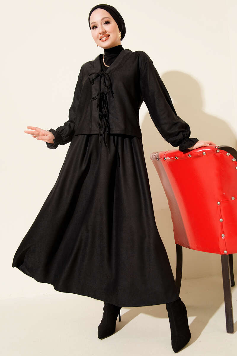 Etnik Desenli İp Bağcıklı İkili Takım Siyah