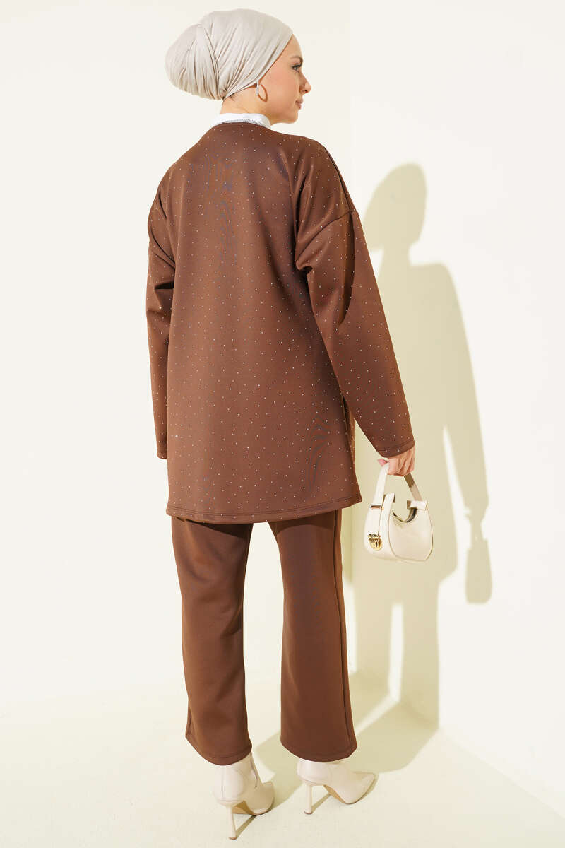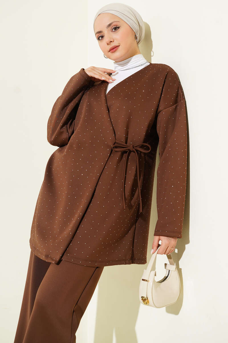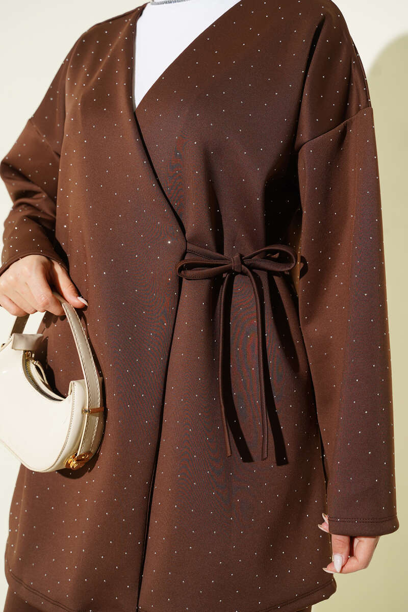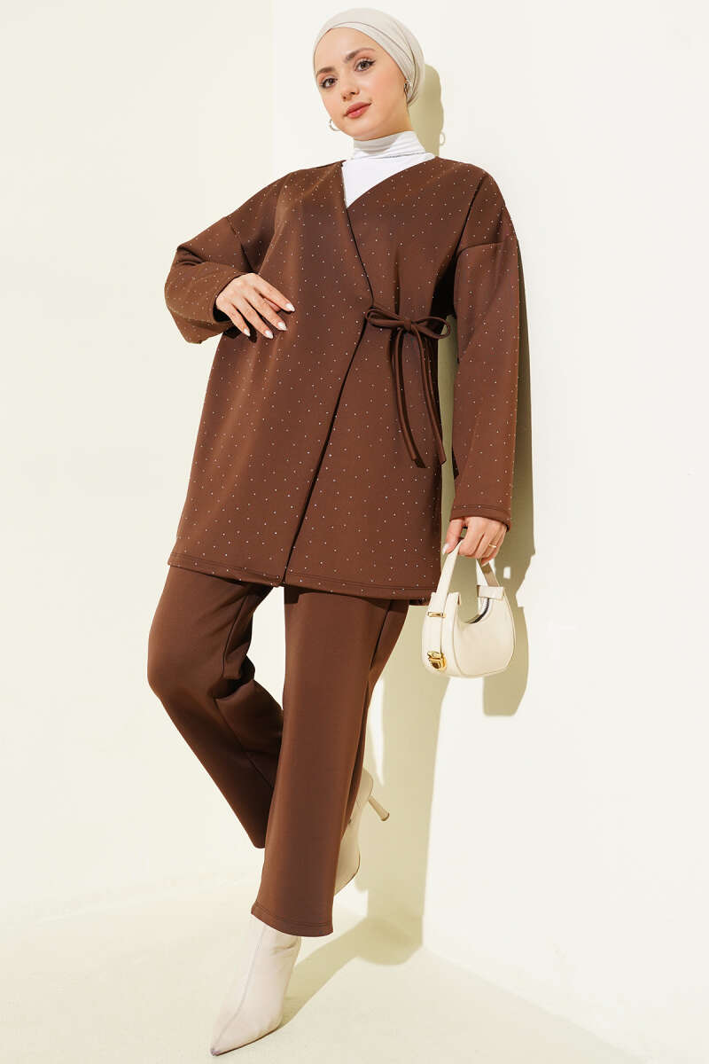 İp Bağlamalı Taşlı Scuba İkili Takım Kahve