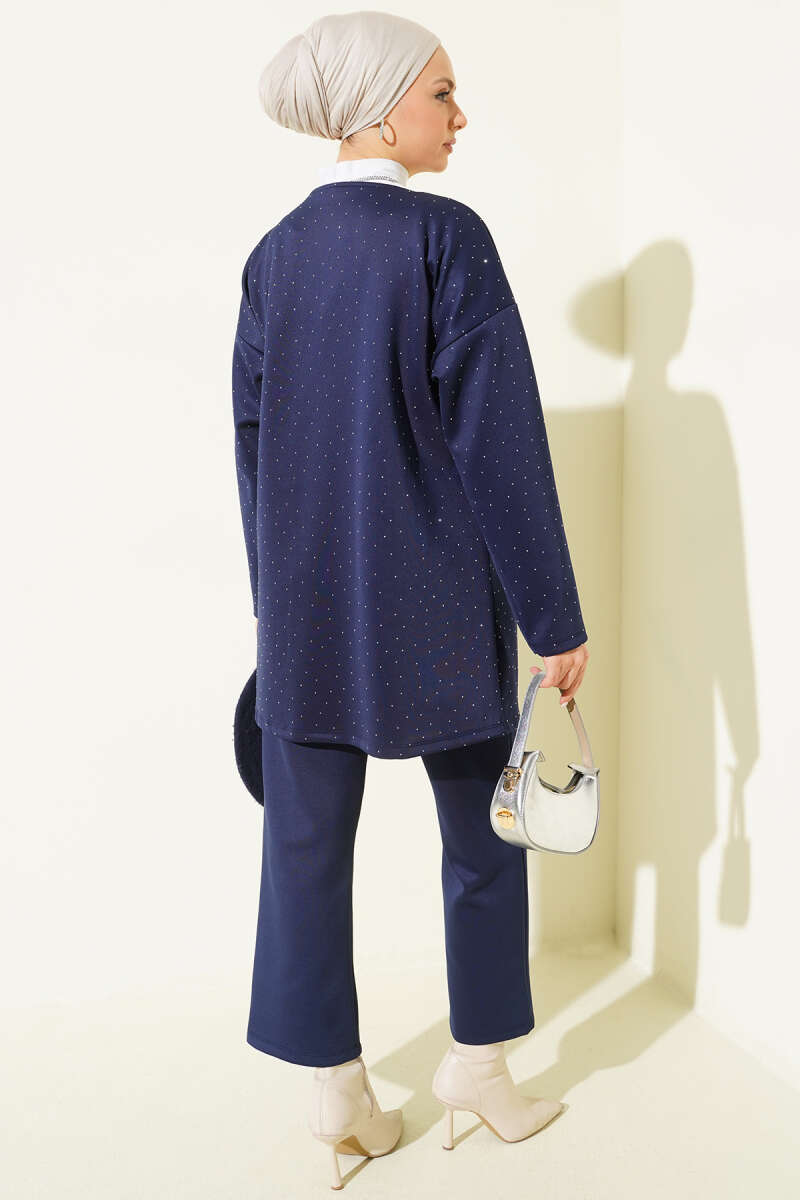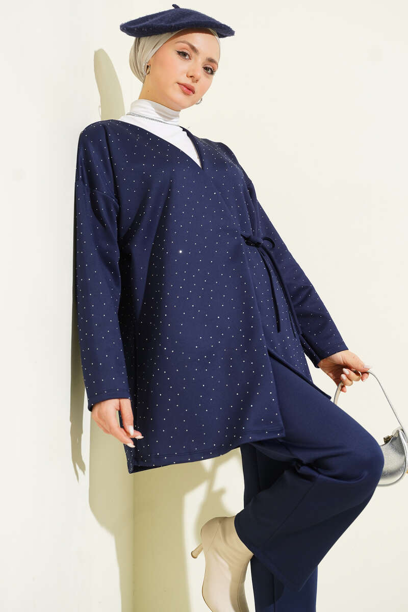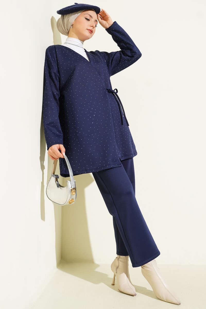 İp Bağlamalı Taşlı Scuba İkili Takım Lacivert