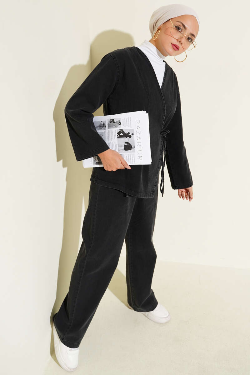 Loyşa Taşlı Fermuarlı İkili Takım Siyah