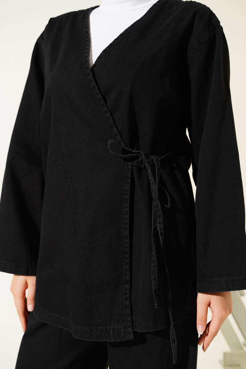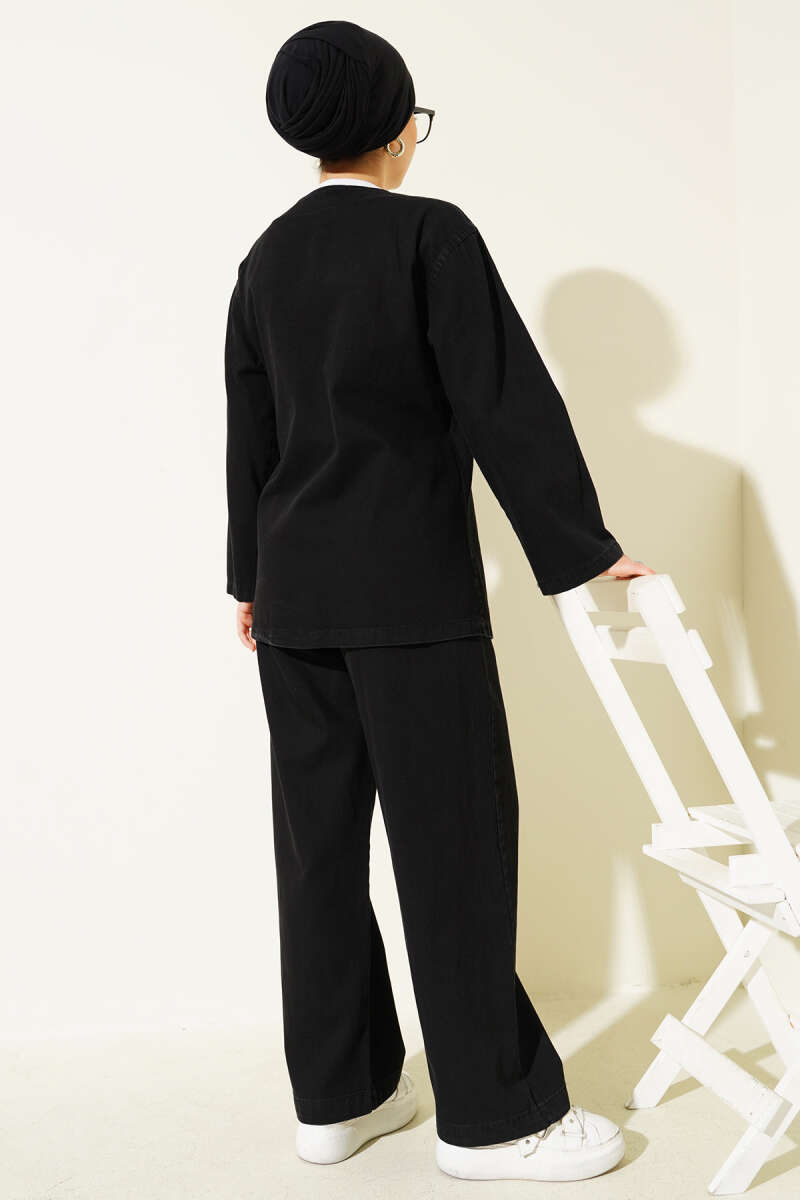 Önü Pileli Kemerli Scuba İkili Takım Siyah
