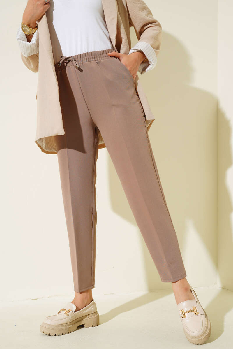Yeni model pantolonlar kombinlerinizle buluşmak için sizi bekliyor. Pantolonun beli lastiklidir. İp detayı ayrı bir hava katmıştır.. Gömlekleriniz ve tunikleriniz ile kendinize zariflik katabileceğiniz bu pantolon harika kumaşı sayesinde iç göstermemesinden dolayı rahatlıkla satın alabilirsiniz.