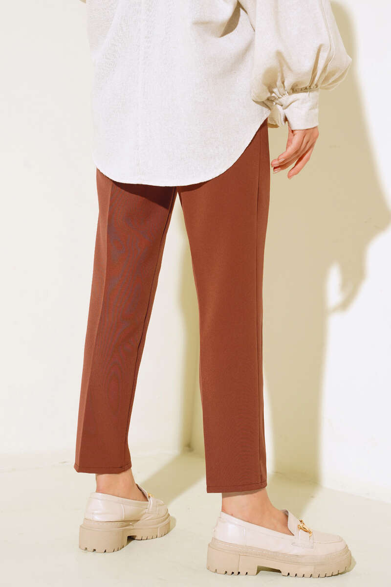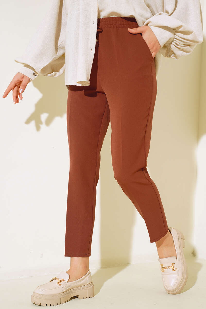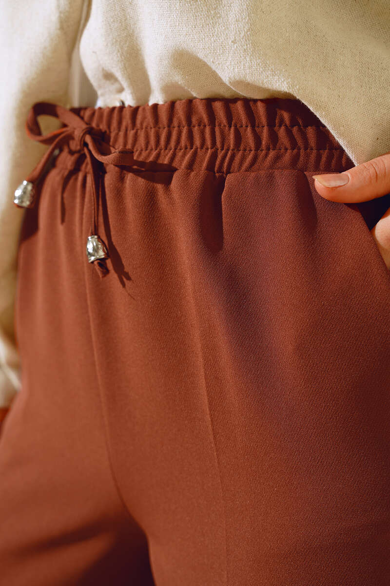 İp Detaylı Beli Lastikli Dar Paça Kiremit Pantolon