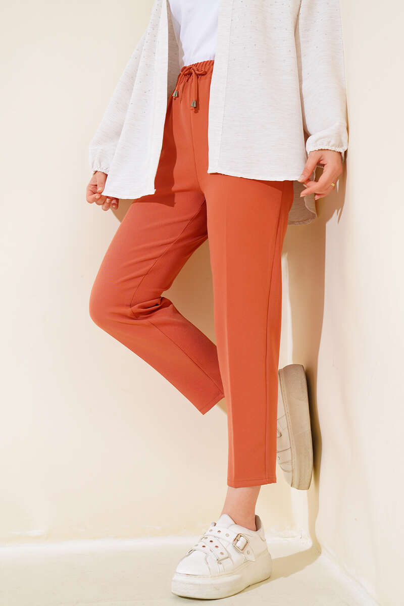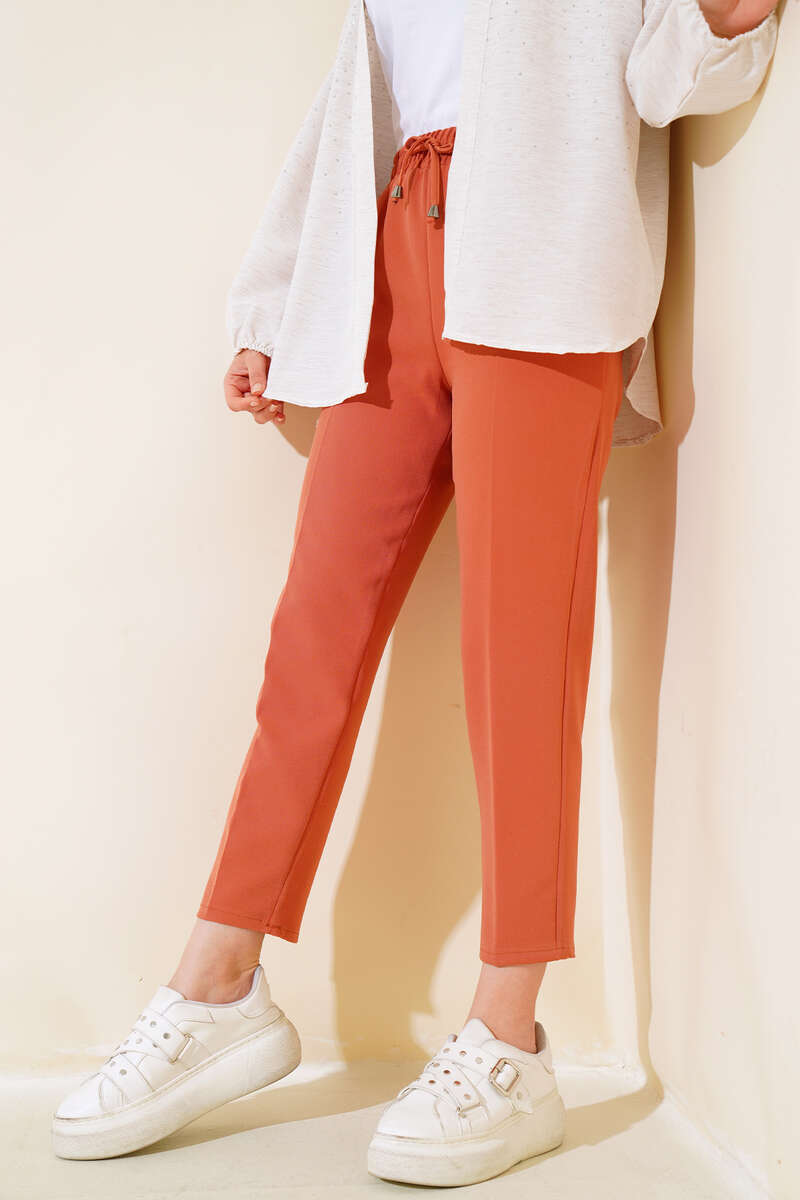 Yeni model pantolonlar kombinlerinizle buluşmak için sizi bekliyor. Pantolonun beli lastiklidir. İp detayı ayrı bir hava katmıştır.. Gömlekleriniz ve tunikleriniz ile kendinize zariflik katabileceğiniz bu pantolon harika kumaşı sayesinde iç göstermemesinden dolayı rahatlıkla satın alabilirsiniz.