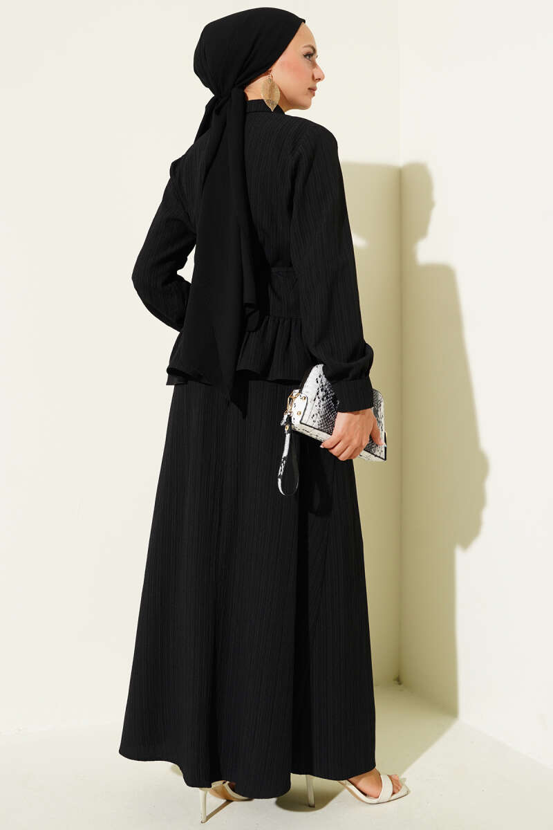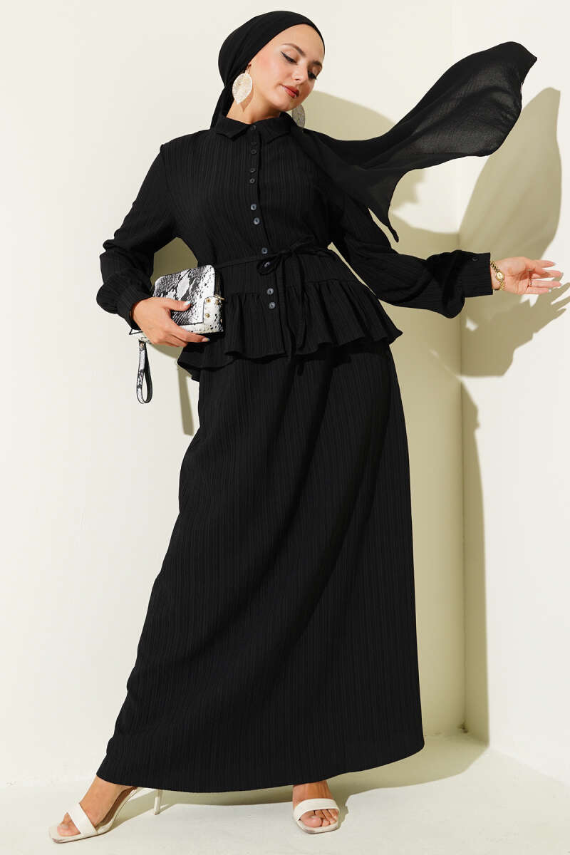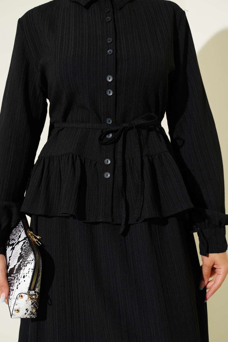 Bel Pensli Kuşaklı Loyşa Etekli İkili Takım Siyah