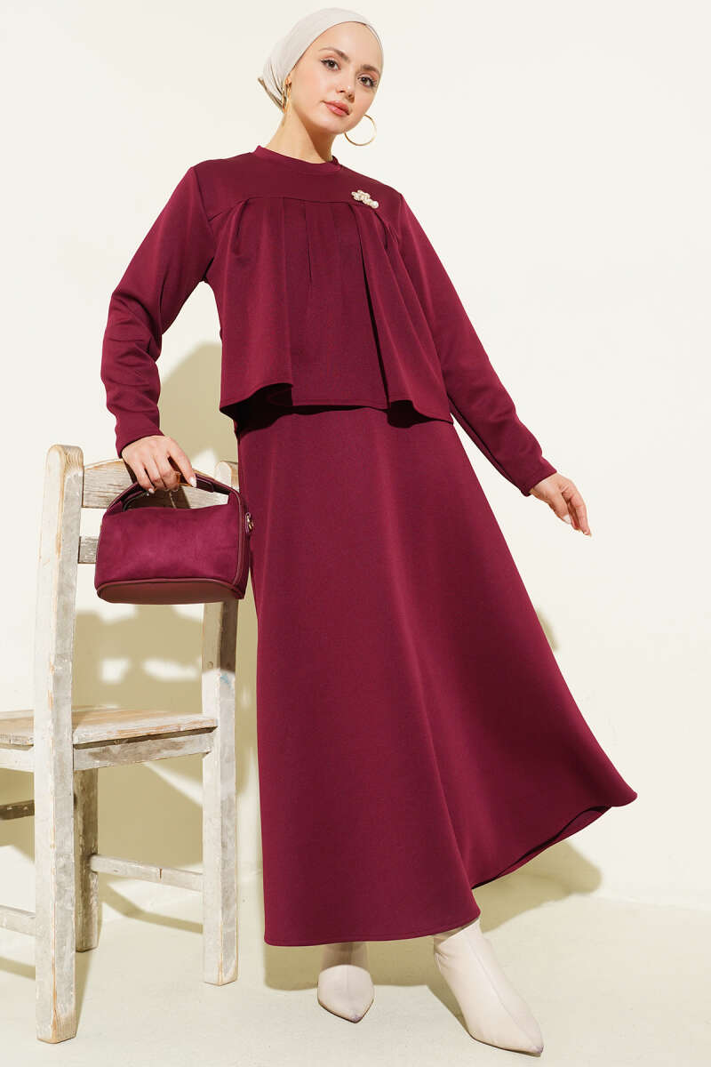 Asimetrik Kesim Bisiklet Yaka İkili Takım Bordo