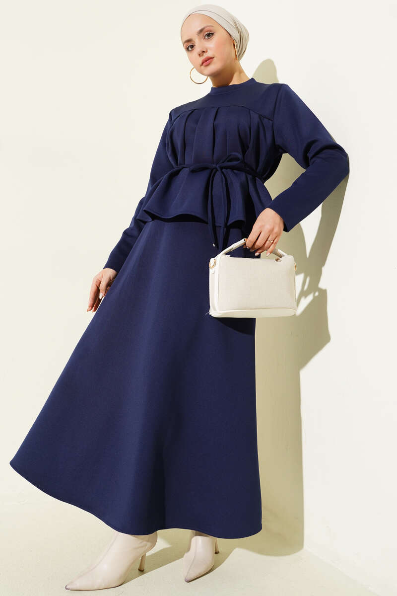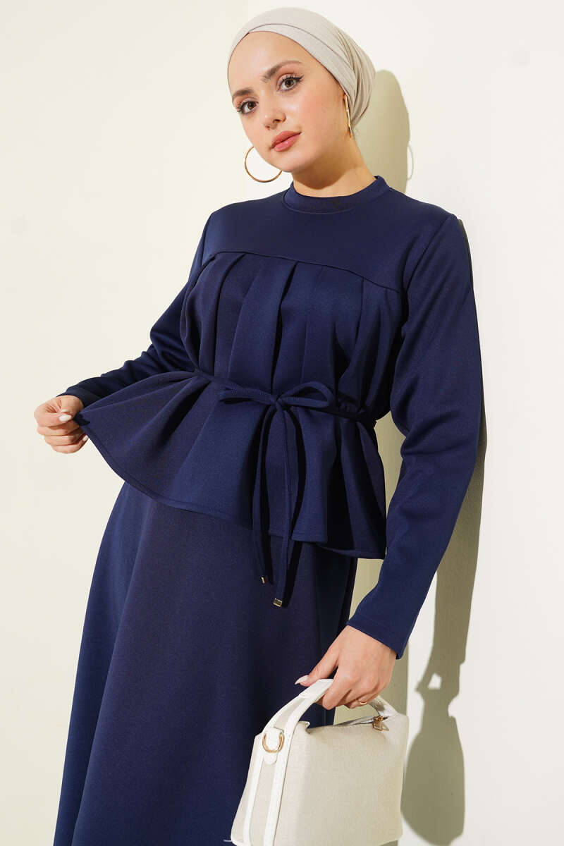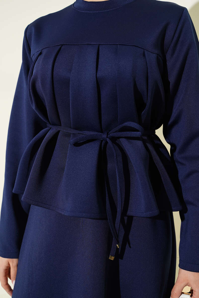Armalı Alt Eteği Piliseli Tunik Lacivert