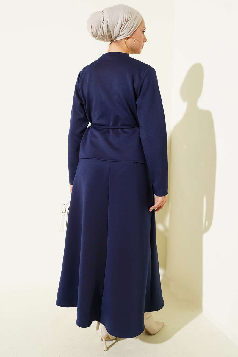 Asimetrik Kesim Bisiklet Yaka İkili Takım Lacivert