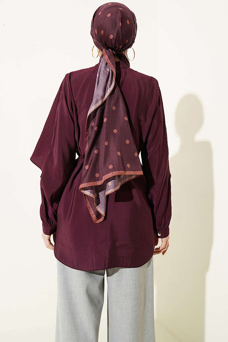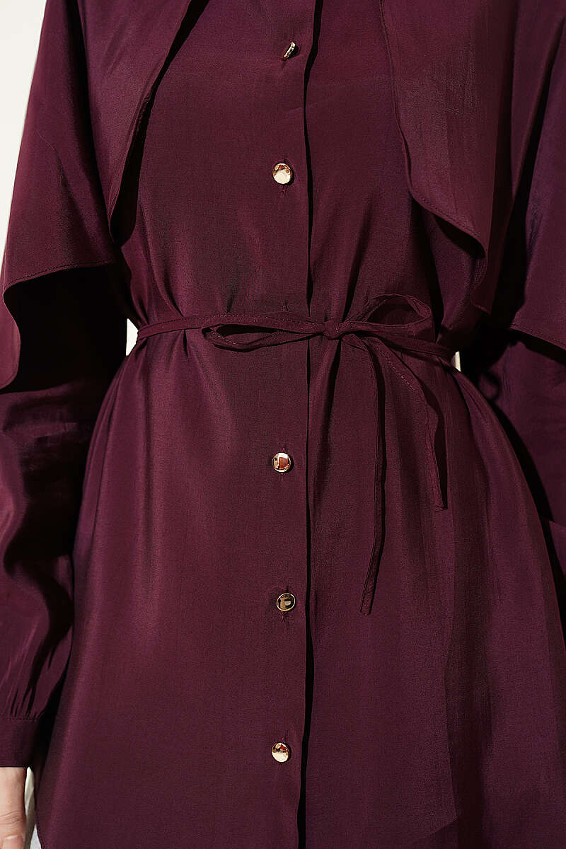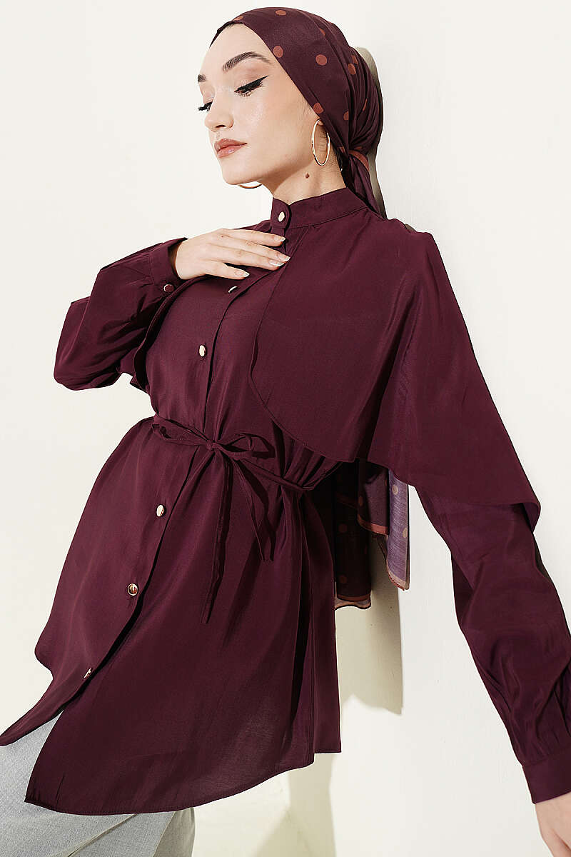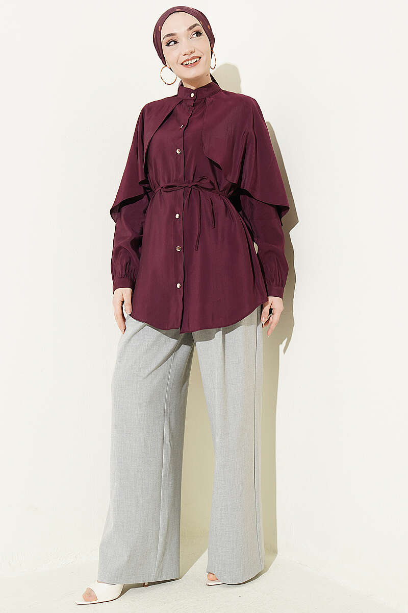 İp Kuşaklı Kol Pelerinli Gömlek Bordo