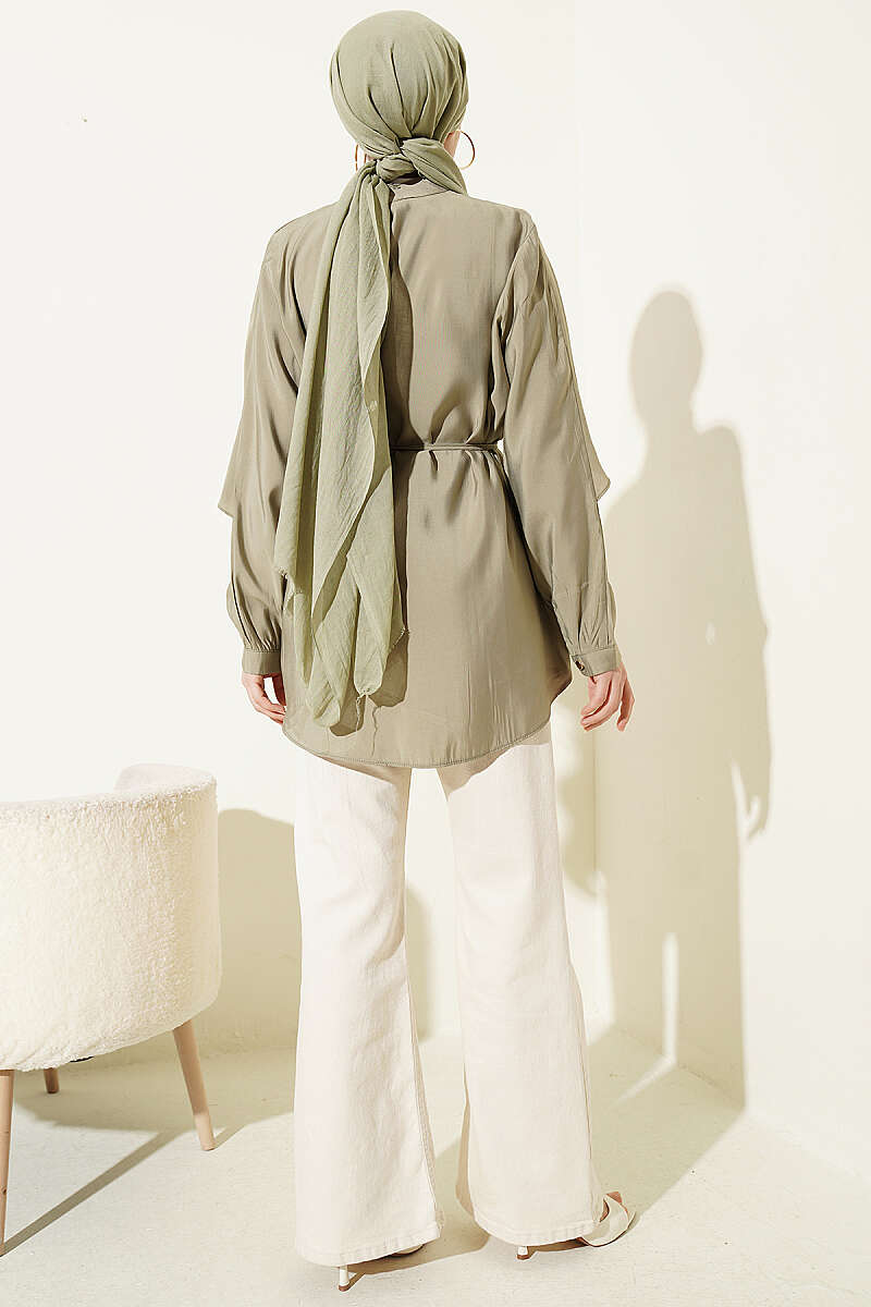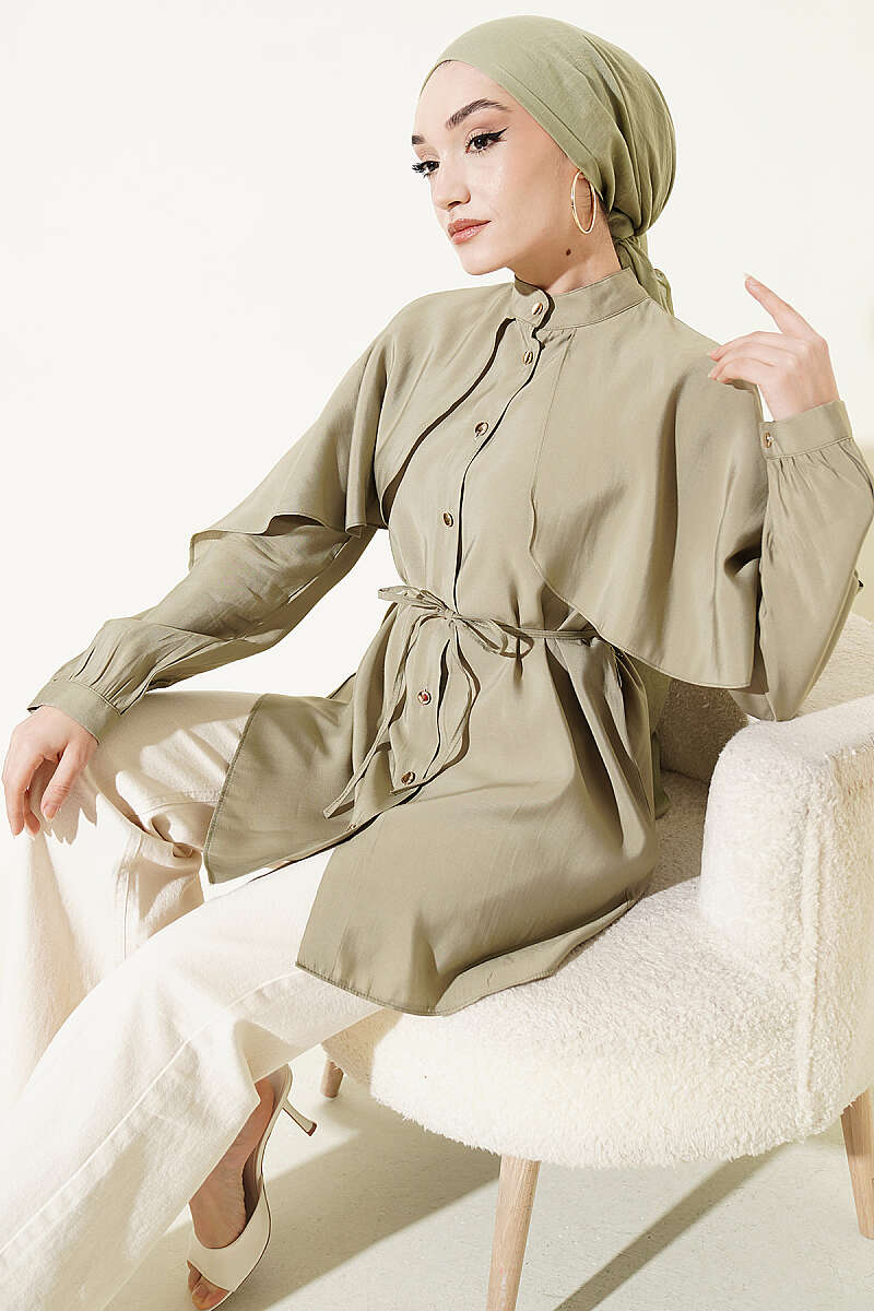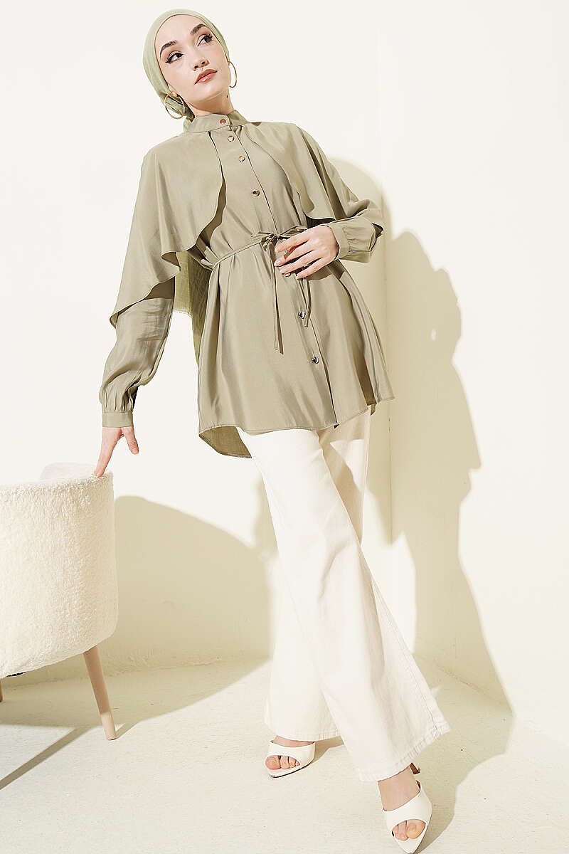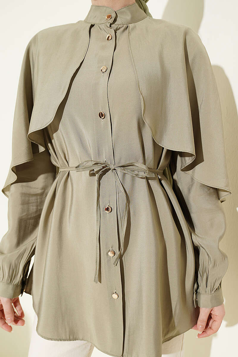 İp Kuşaklı Kol Pelerinli Gömlek Çağla Yeşili