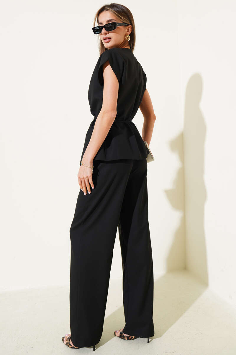 Tek Düğmeli Kuşaklı Dabıl İkili Takım Latte