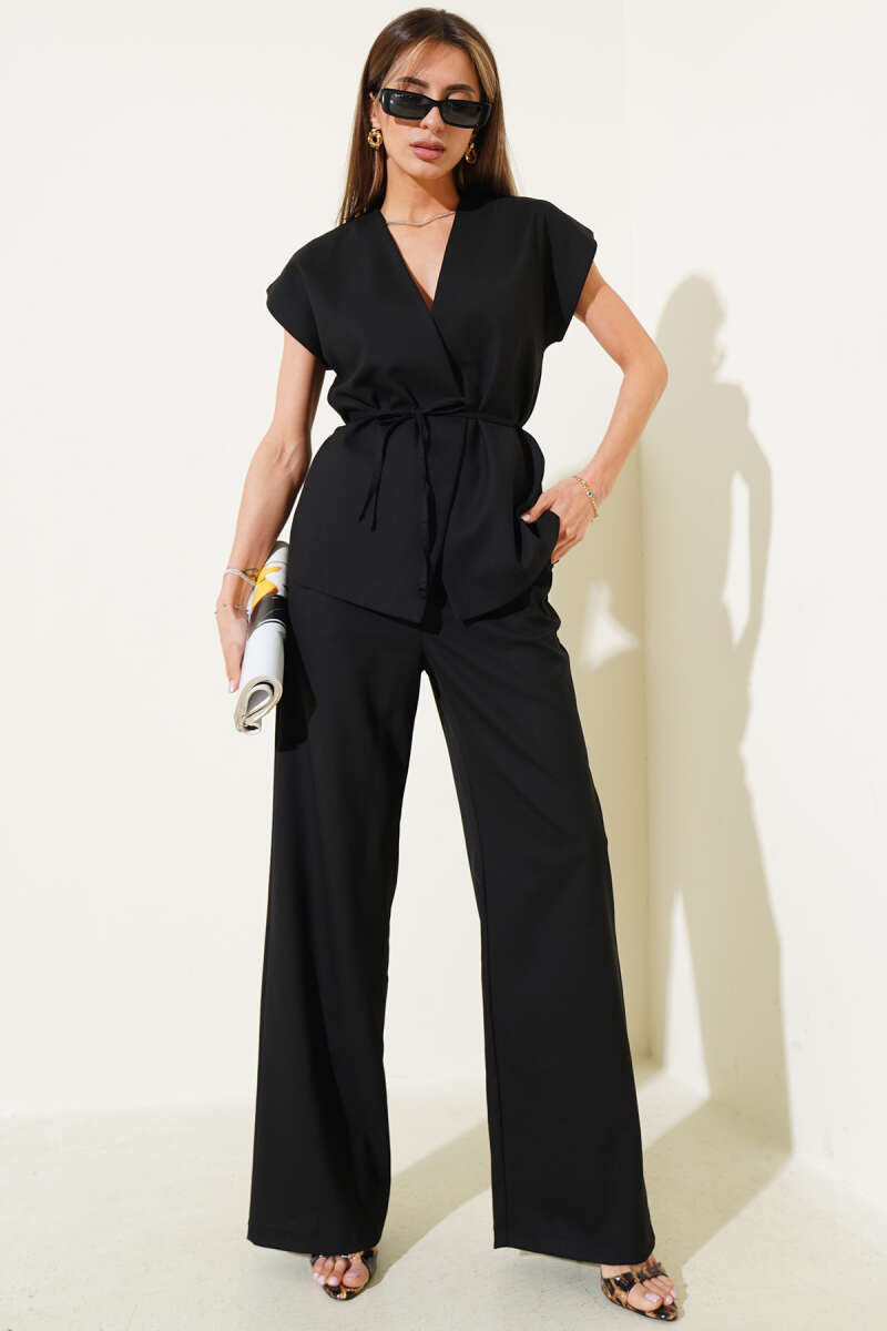 Kayık Yaka Yırtmaçlı Bluz Siyah