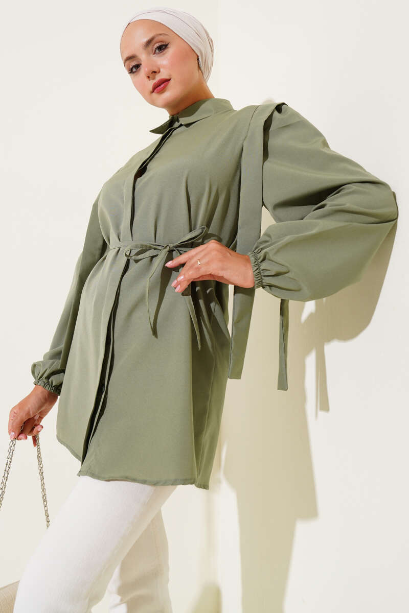 Önü Pul Süslemeli Basic Gömlek Gül Kurusu