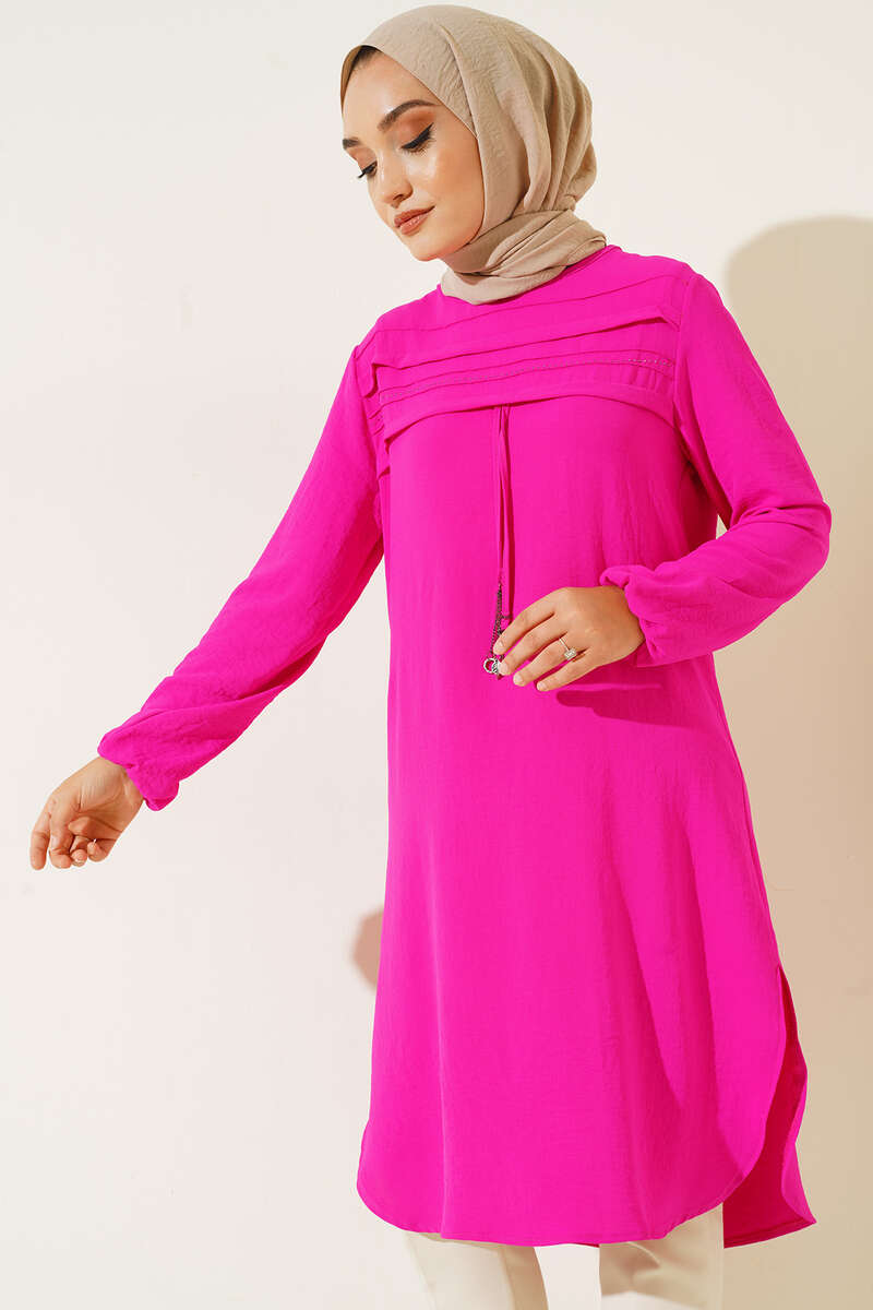 İpi Aksesuar Detaylı Uzun Tunik Fuşya