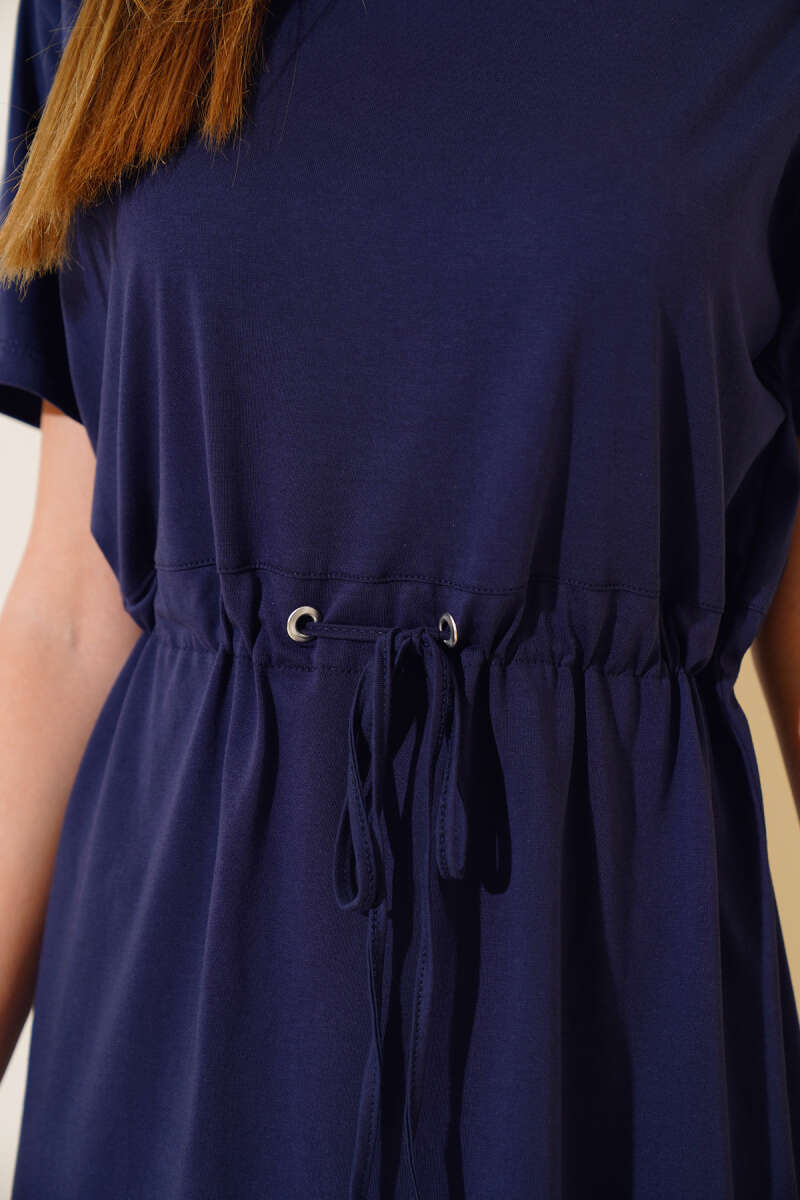 Çizgi Baklava Desen Triko Tunik Lacivert